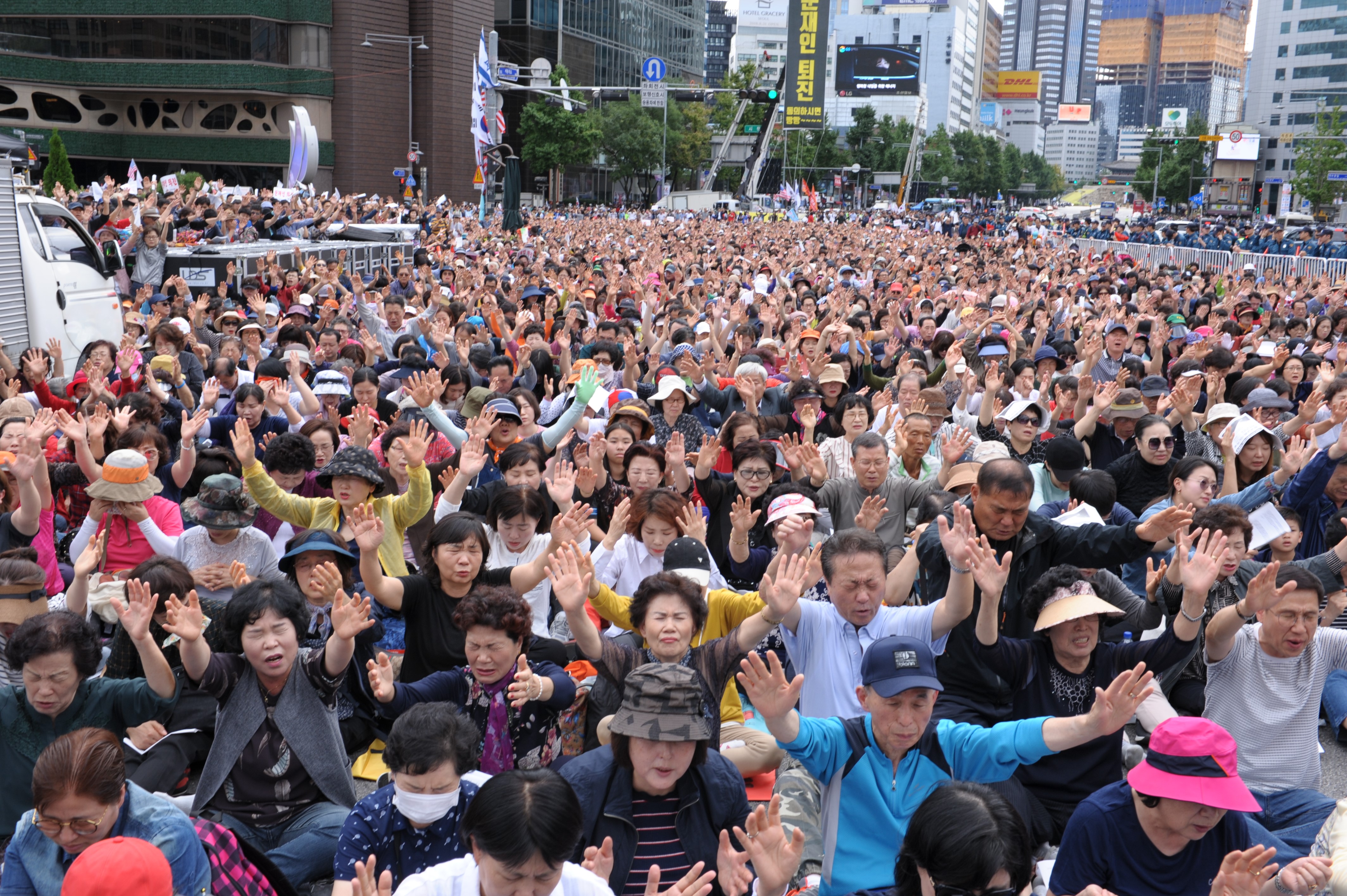 기도하는 한국교회는 살아있다. 10월 3일 한국교회 기도의날에 기도하려 모인 성도들의 모습들이다.