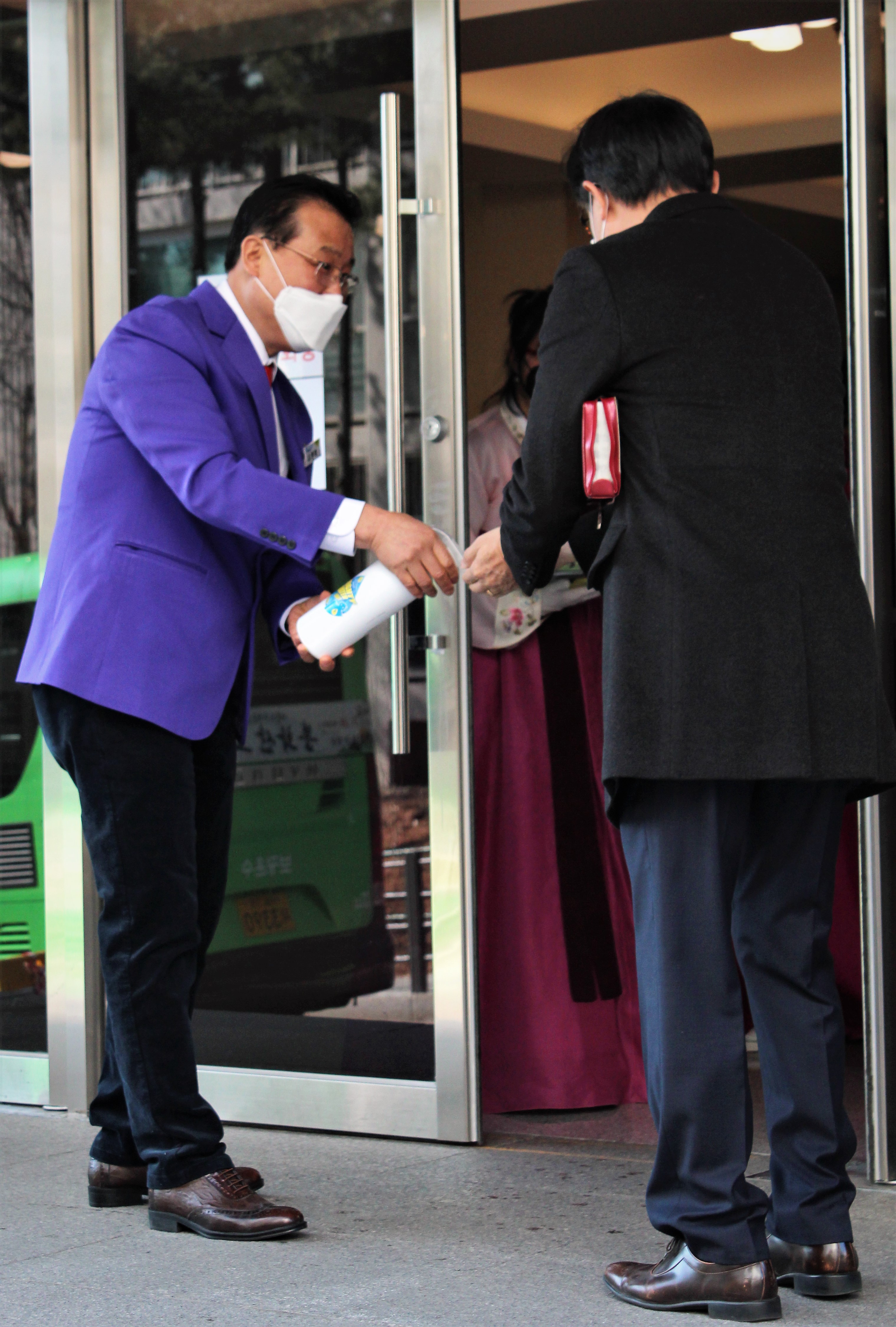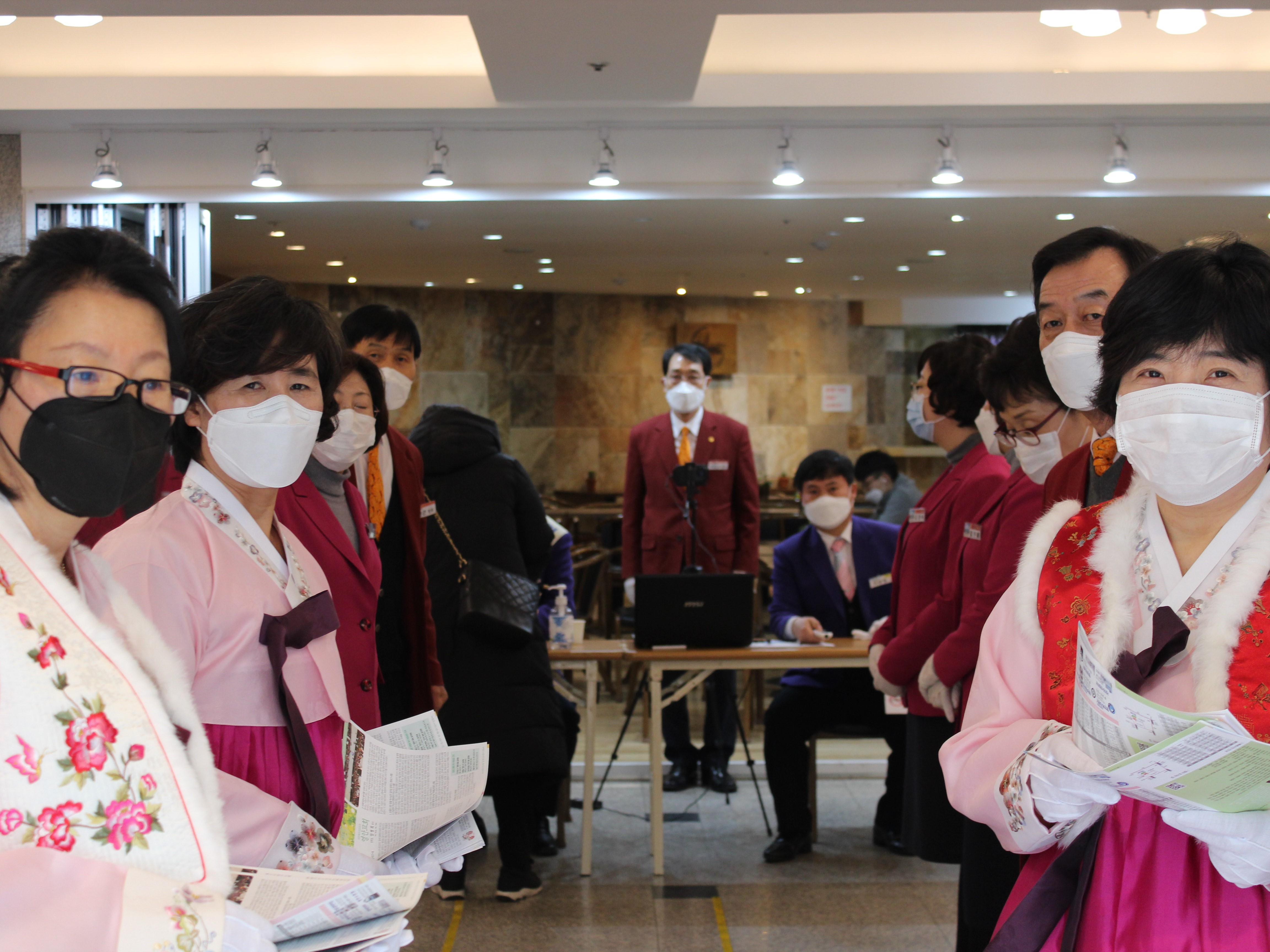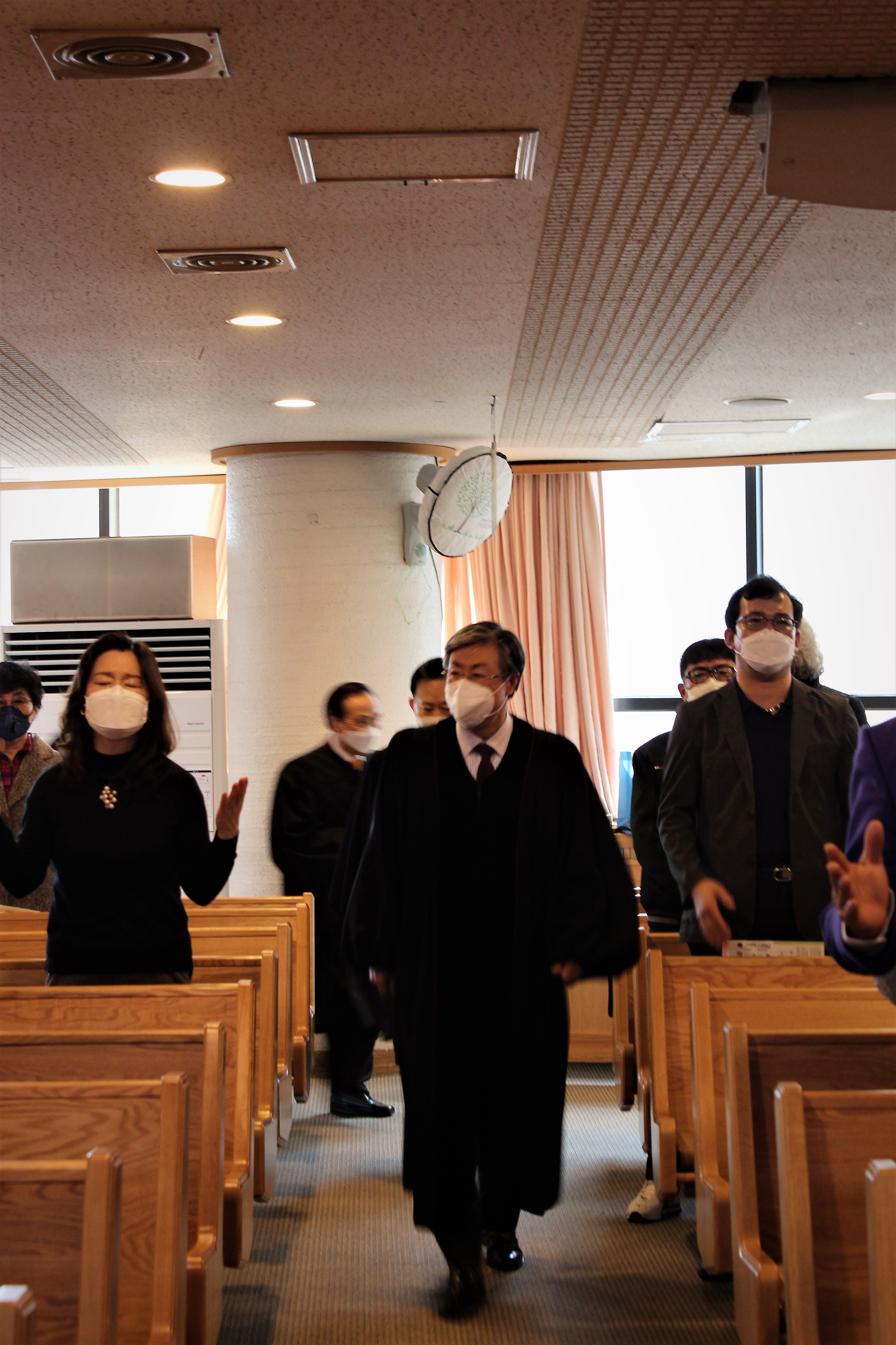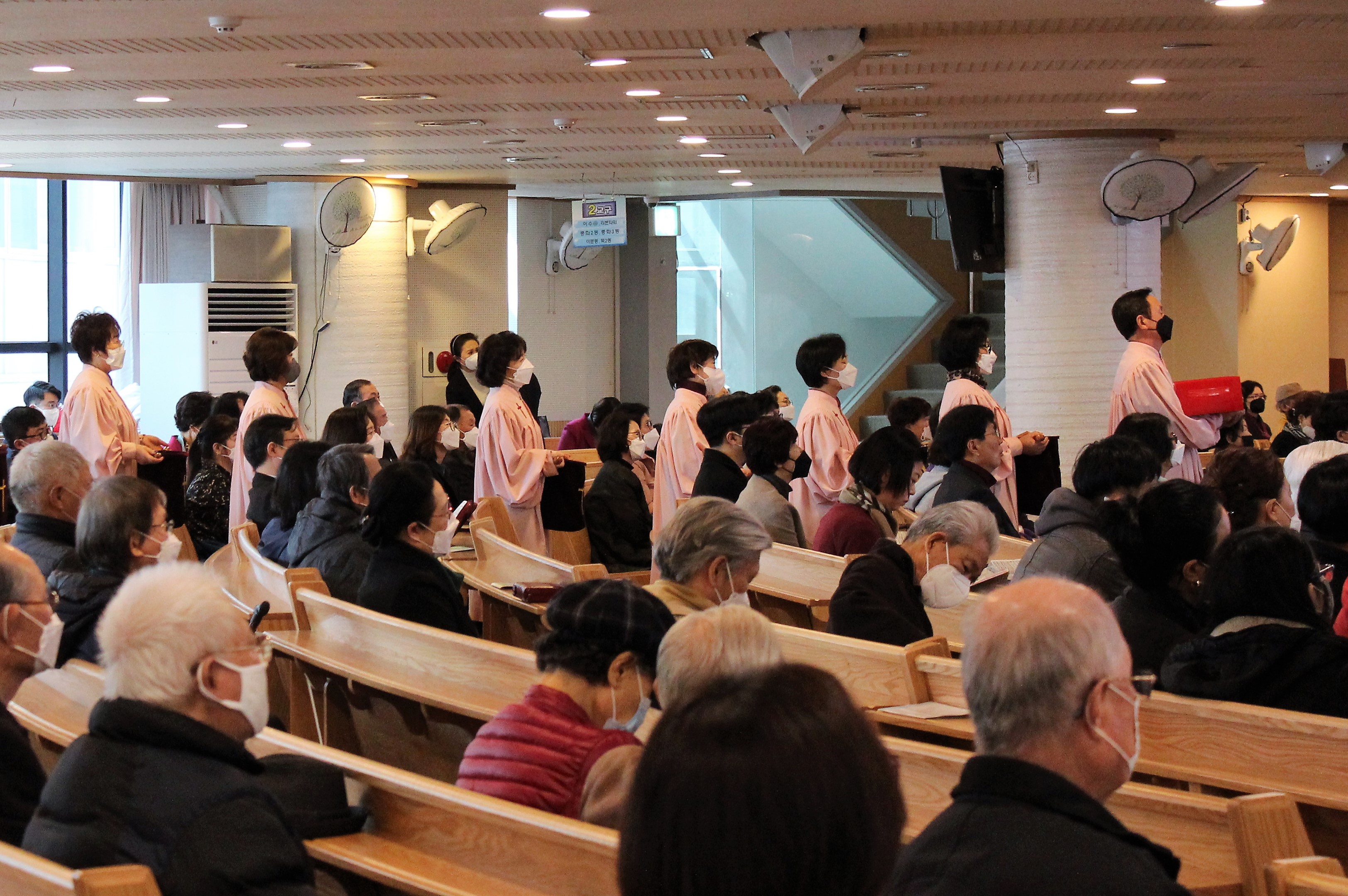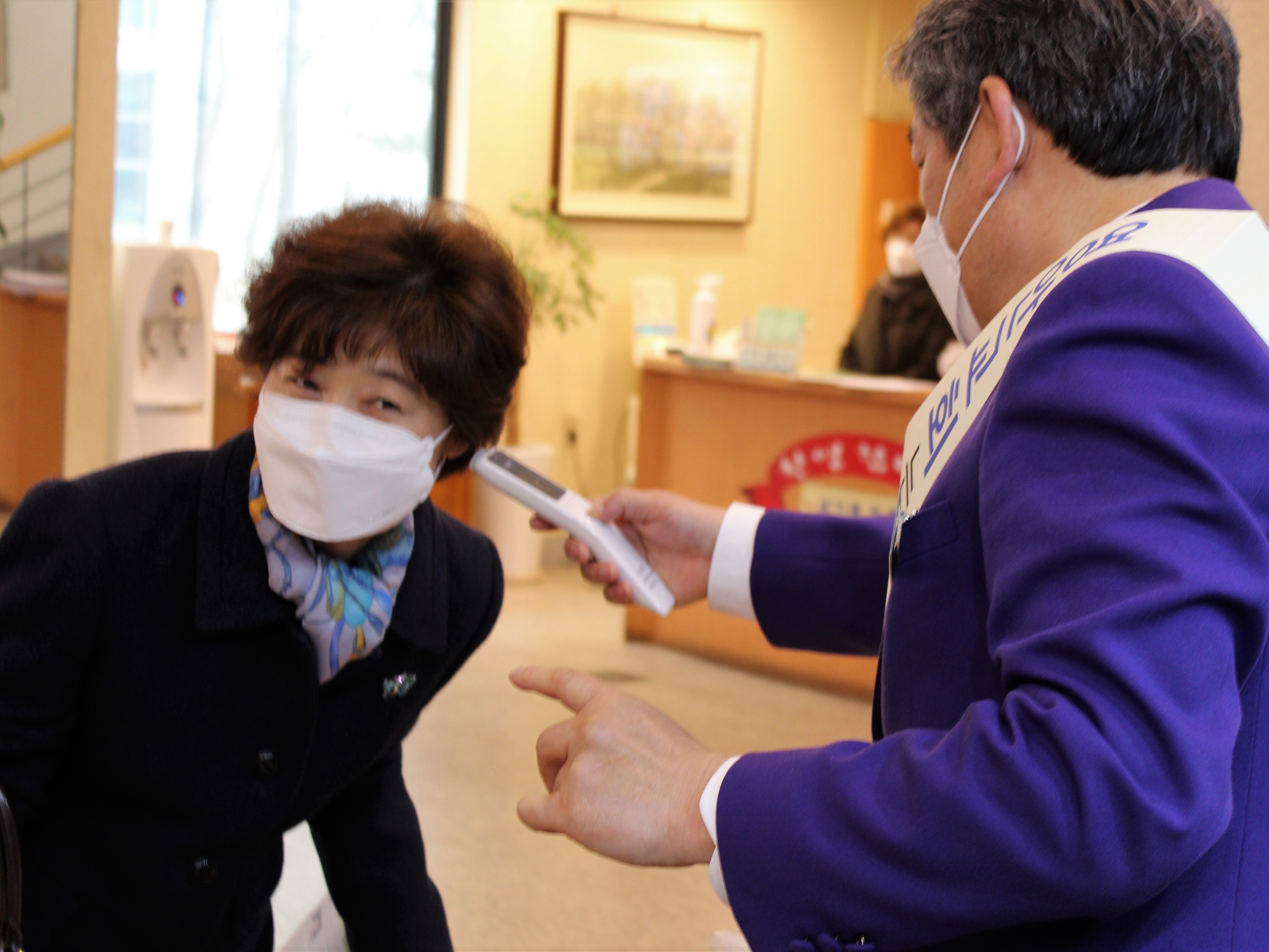전염병확산을 막기위해 열감지카메라, 온도계등을 통해 출석하는 신자들을 일일히 체크하면서, 손소독과 마스크를 제공.