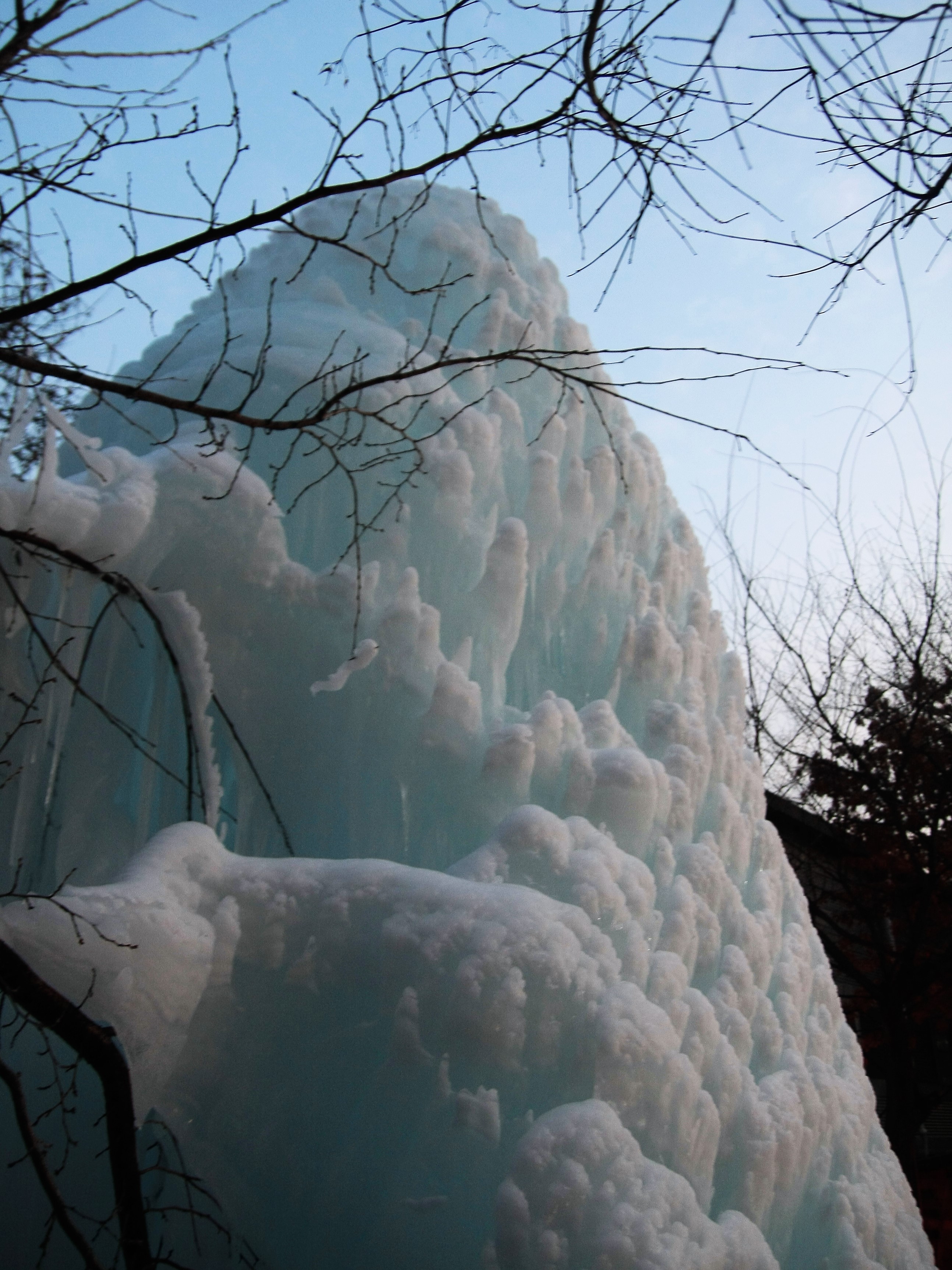 3미터 이상 높이의 분수의 물이 얼어서 만들어진 산봉오리같은 분수탑이 생겼네요. 정말 겨울이라는 사실을 다시금 실감나게 하는 모습같습니다.