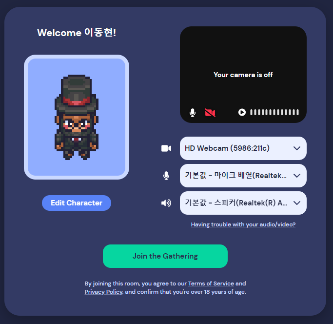게더타운(Gather town)은 현실과 유사한 경험을 할 수 있는 가상 공간에서 사용자들이 2D 그래픽의 아바타를 통해 서로 만나 커뮤니케이션과 협업을 할 수 있도록 지원하는 온라인 플랫폼이지만 이를 기반으로 내담자들을 돕고 상담할 수 있는 공간으로 재탄생하였습니다.