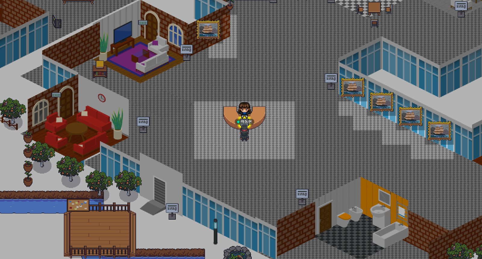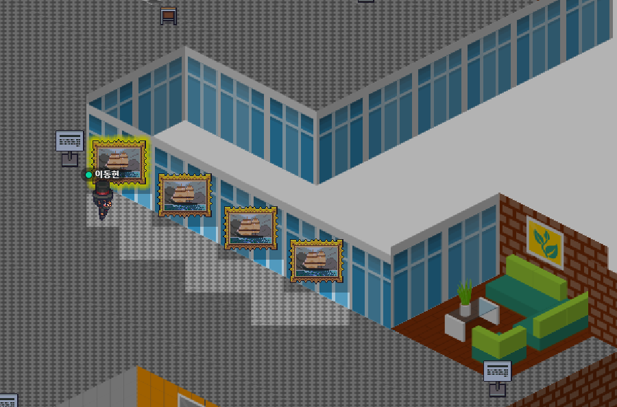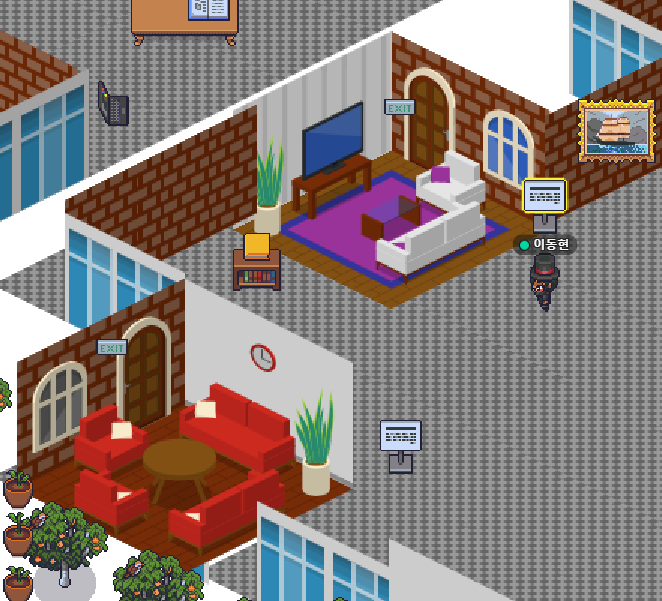 게더타운(Gather town)내에서는 사무실이나 행사장을 그대로 본떠 누구나 자유롭게 맵을 제작할 수 있도록 지원하고 있습니다. 이를 통해 상담실, 전시실, 회의실등을 만들수 있습니다.