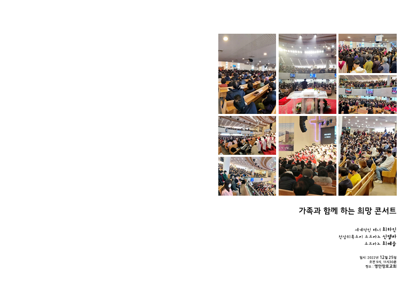 금번 희망콘서트는 아기 예수님의 탄생을 축하하면서 하늘에는 영광, 땅에는 평화라는 기쁜소식을 이웃과 함께 나누기 위해 열린 음악 콘서트입니다.