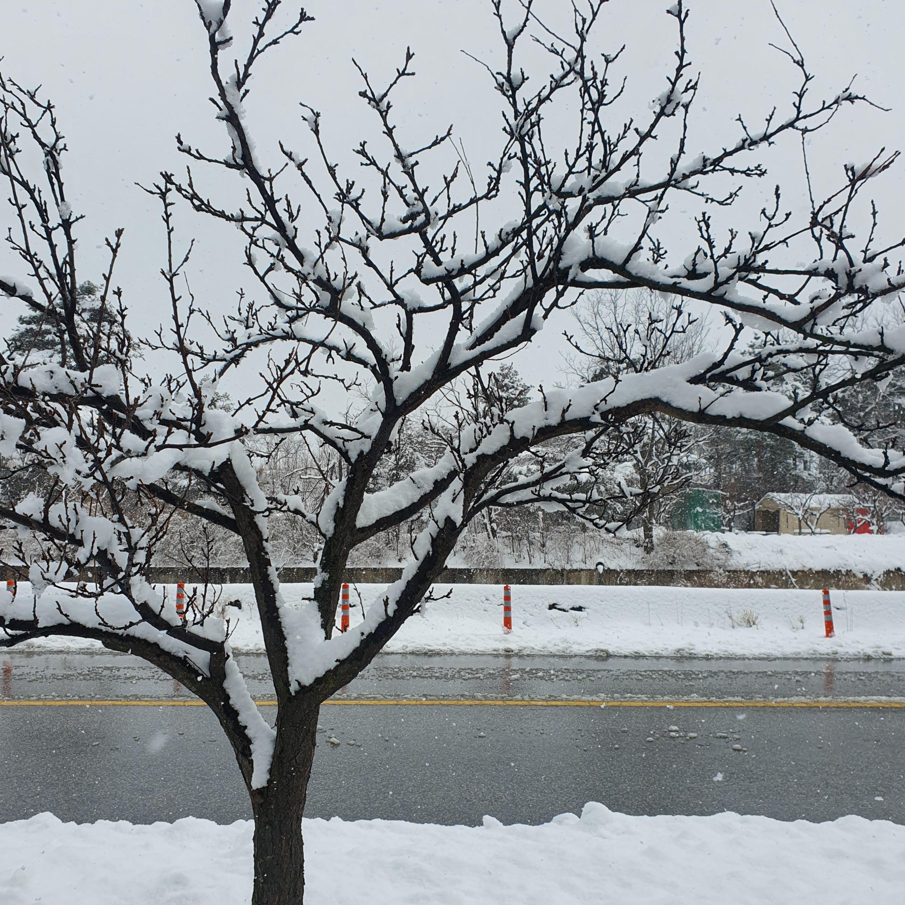 나무들도 흰눈들이 싫지는 않은가 보다
