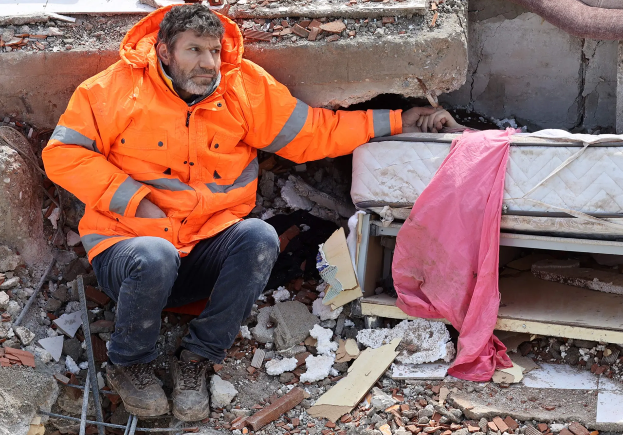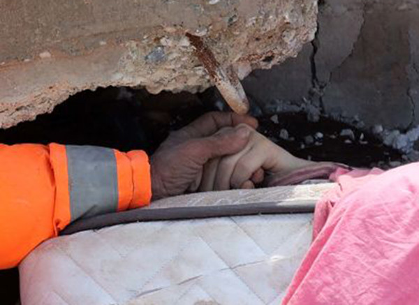 강진으로 인해 튀르키예와 시리아에서 수천명의 희생자를 내었다. 지진이 일어난 다음날인 2월 7일에 중년 남성 한 명(한제르)이 아파트 잔해 속에 깔린 딸의 손을 꼭 붙잡고 있다. 아빠는 지진으로 인해 건물 잔해에 깔려서 주검으로 돌아온 딸(딸 15살)의 손을 꼭 붙잡고 놓지 않는 모습을 보면서 가슴이 너무나 아파왔다. 더 이상 돌아오지 않을 딸의 손을 보면서 애통하고 아파하는 고통이 느껴진다.
