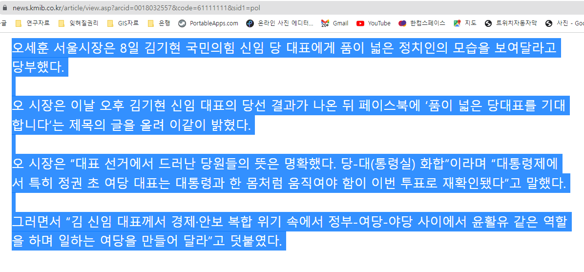 두번째 테스트 - 국민일보 기사