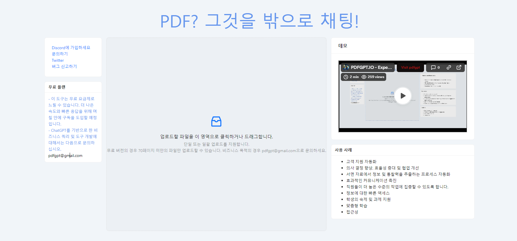 https://pdfgpt.io/ 70페이지 분량의 내용을 읽어와서 사용자에게 정보를 제공합니다.