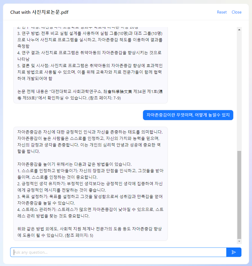 chat gpt api 프로그램을 기반으로 한 chat pdf는 이용자가 가지고 있는 PDF를 업로드하여 해당 PDF 정보를 바탕으로 대화를 할 수 있도록 돕는 웹사이트입니다. PDF 자료는 보고서, 논문, 계획서, 자기소개서 등 다양한 분야에 활용할 수 있습니다.