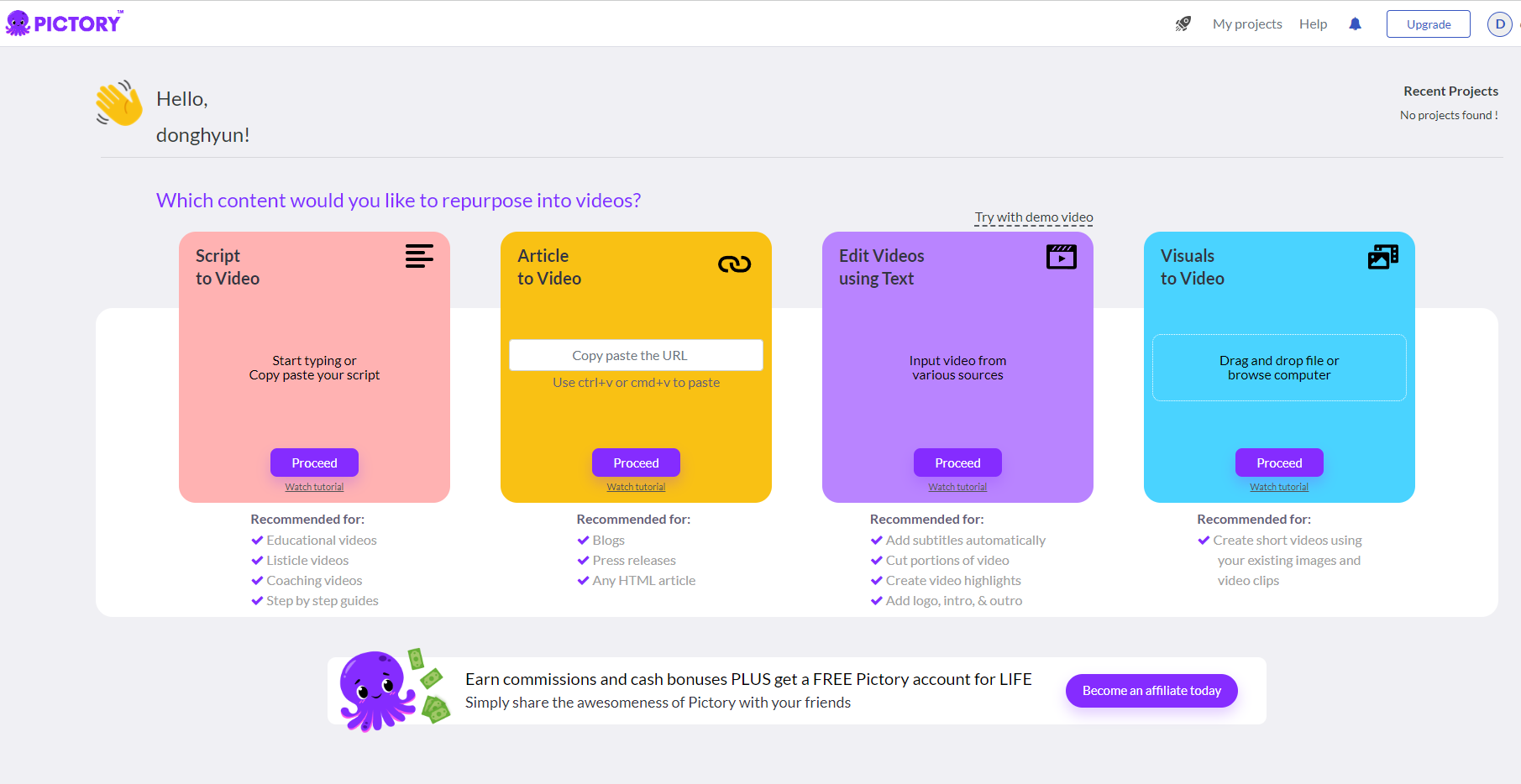 픽토리ai 로 유튜브 동영상을 만듭니다.
