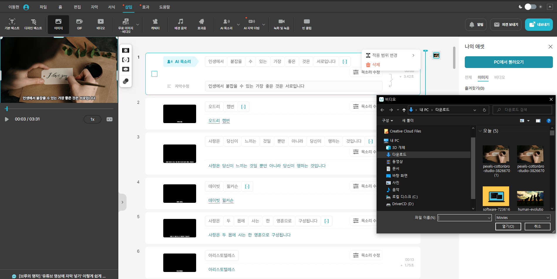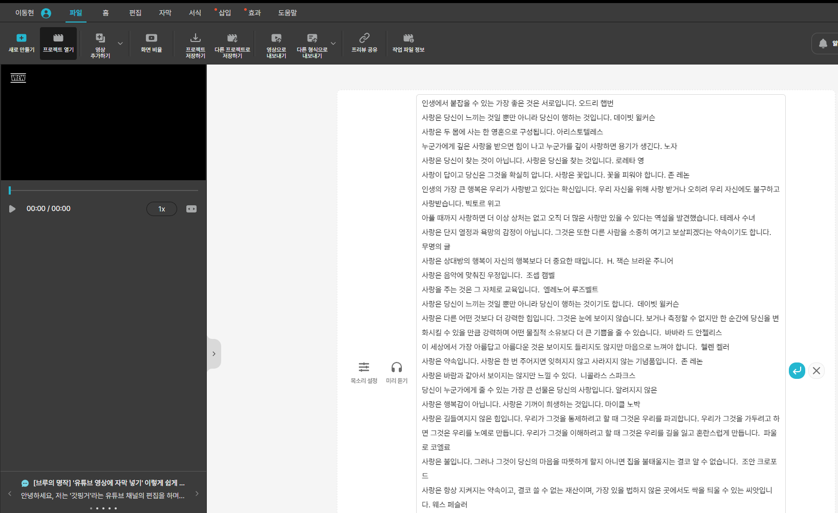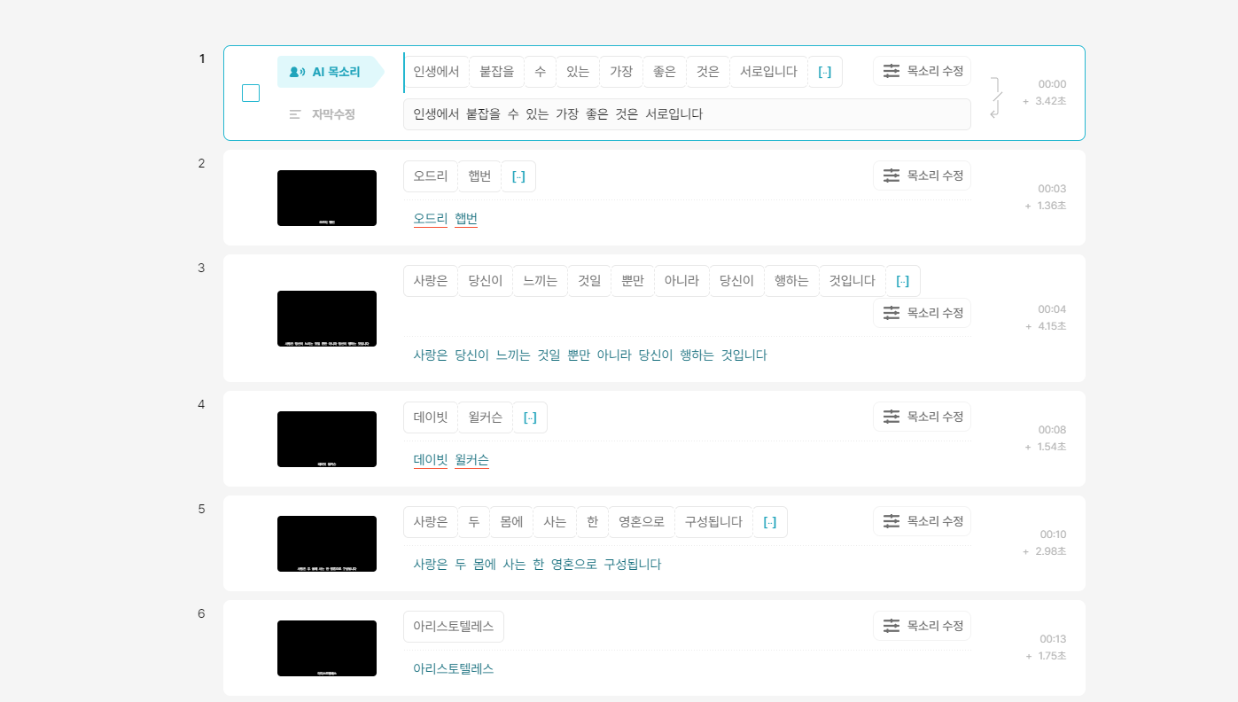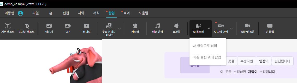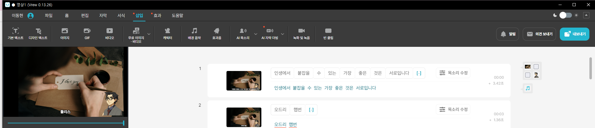 브루에 자막이 입혀졌습니다. 자막과 목소리도 수정가능합니다.