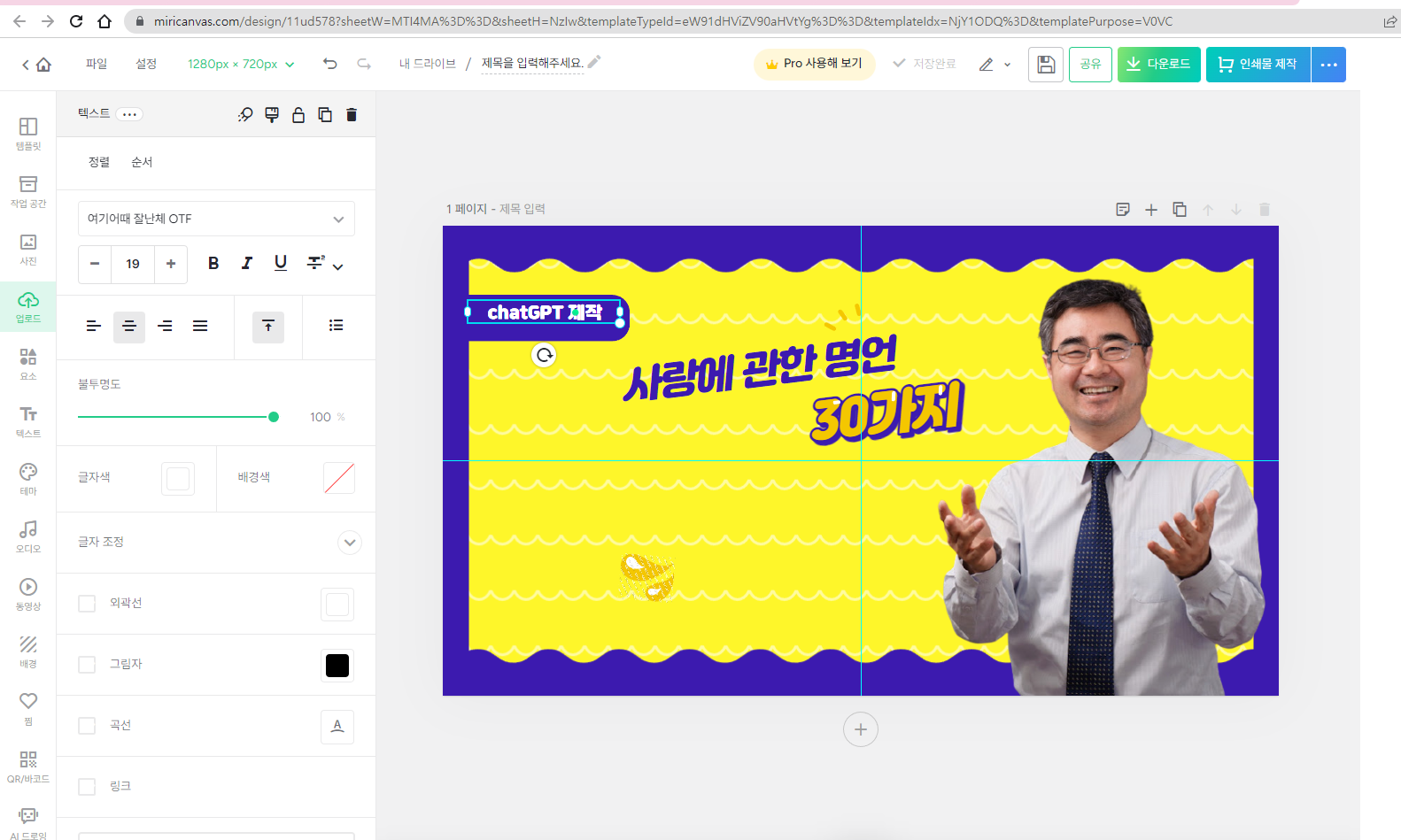 썸네일을 만들려면 "미리캔퍼스"에 로그인하고