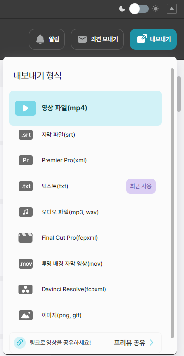 우측 상단에 있는 비디오를 내보내고 완성된 제품을 검토합니다.