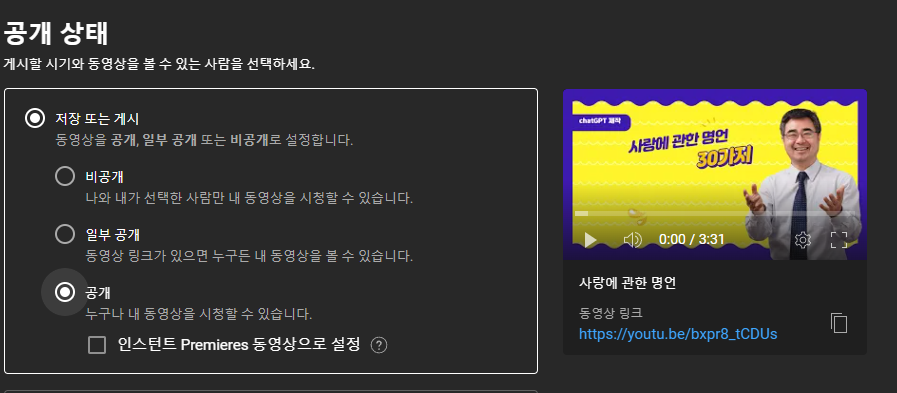 브루로 영상을 만들었고, 미리캔퍼스로 썸네일을 제작했습니다. 이제 마지막 단계인 영상을 유튜브에 올려서 작업을 하면 최종 마무리가 됩니다.