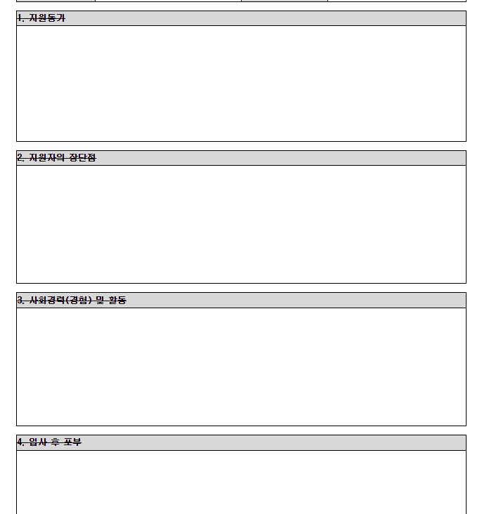 자기소개서 양식의 양식입니다. 실제