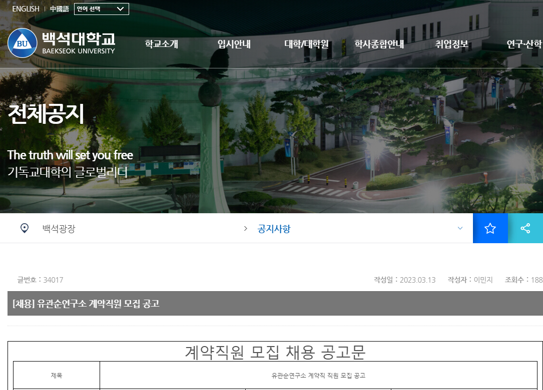 지원동기 - 유관순연구소와 백석대학교가 가지고 있는 건학이념과 연구소의 목적을 작성하세요.