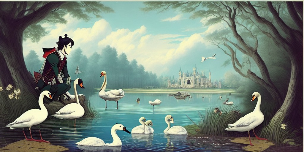 멋진 왕자는 산속을 여행하다가 아름다운 호수를 발견하였습니다. 그곳에서 우아한 백조들이 자유롭게 수영하는 것을 보았습니다. 그리고 그 중에서도 가장 아름다운 하얀 백조가 눈에 들어왔습니다. 그 백조는 사랑스러운 눈빛으로 왕자를 바라보며, 어디론가 날아가 버렸습니다.