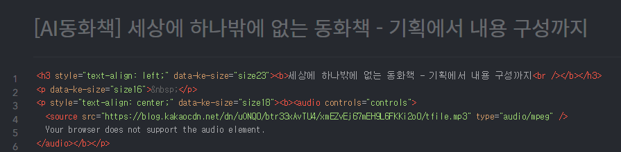 프레임라이프 페이지에서 오디오를 넣고자 하는데 첨부는 가능하지만 오디오 플레이는 지원하지 않는다. 그래서 해당 페이지에서 오디오 파일을 플레이 하기위해 chatgpt에게 코드를 제작해 달라고 요청했다. 그 결과값은 아래에 있으며, 결과와 작용한 사례도 함께 있습니다. 홈페이지나 블로그를 운영하는데 더 이상 코드때문에 고민하지 않아도 될 듯합니다.