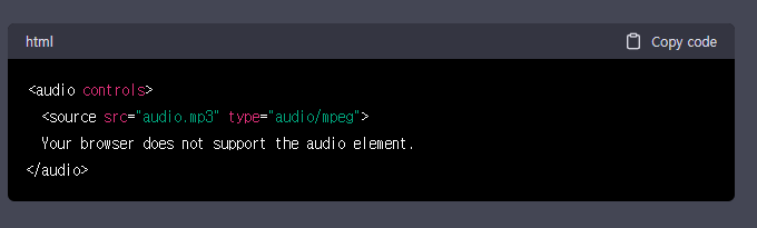 3. HTML5 Audio 요소를 사용하여 오디오를 재생하는 코드