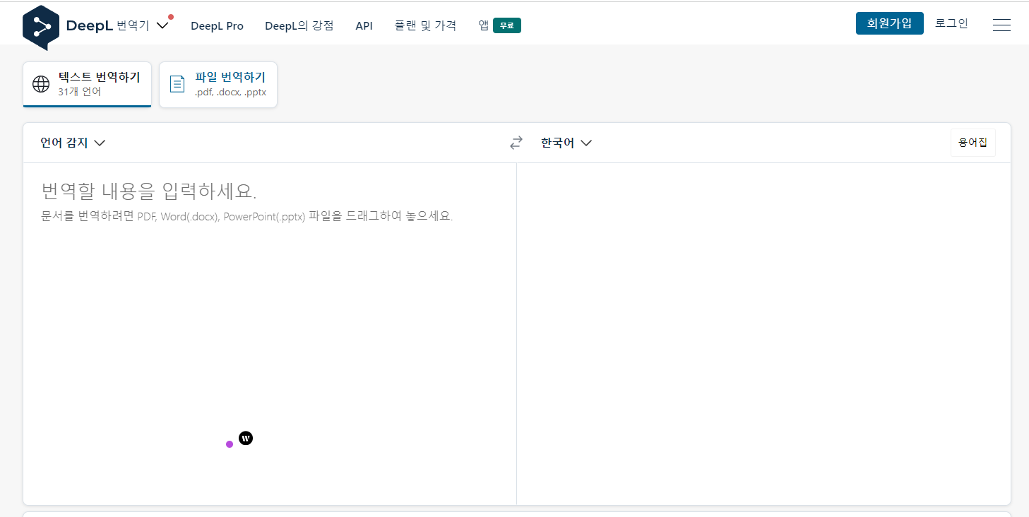 DeepL은 독일 회사가 개발한 번역 도구입니다. 영어, 독일어, 프랑스어, 스페인어, 포르투갈어, 이탈리아어, 네덜란드어, 폴란드어, 러시아어, 일본어, 중국어 사이에서 번역할 수 있습니다. 워드, 파워포인터, pdf 파일을 번역창에 넣기만 해도 번역이 이루어진다. DeepL은 인공지능을 사용하여 다른 번역 도구에 의해 생성된 번역보다 더 정확하고 자연스러운 번역을 생성합니다. DeepL을 사용하려면 번역할 텍스트를 상자에 입력하고 번역할 언어를 선택한 후 "번역" 버튼을 클릭하기만 하면 됩니다.
