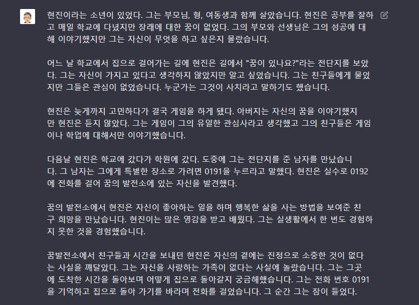 인공지능은 현진과 그의 가족, 친구들에 대한 기본정보를 제공해 달라고 합니다. 그래서 아래와 같이 내용을 보강해서 재입력을 했습니다.