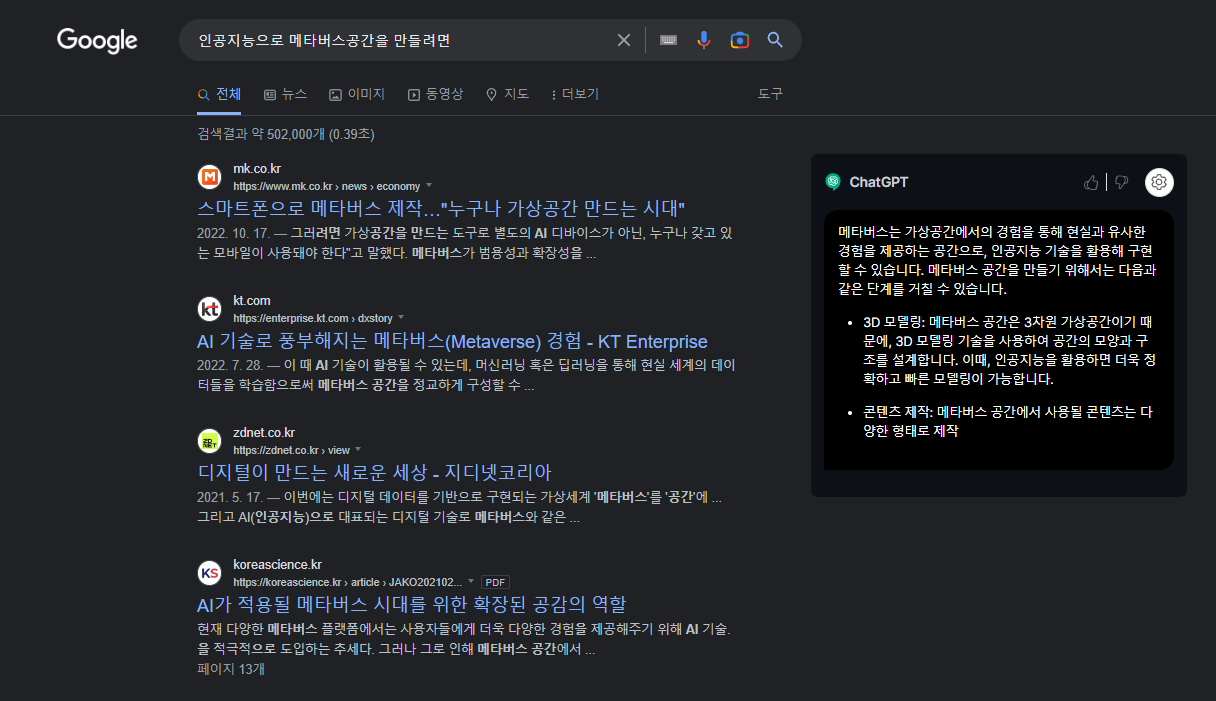 본 포스트는 인공지능 ChatGPT로 작성하였으며, 인공지능이 과연 메타버스 공간을 만들때 어떤 도움을 받을 수 있는지에 대해 물어보았습니다. 마지막으로 검색엔진과 어떤 정보를 제공하는지 독자여러분들이 직접 비교해 보시기 바랍니다. 인공지능의 답변은 명조체로 작성되었습니다.