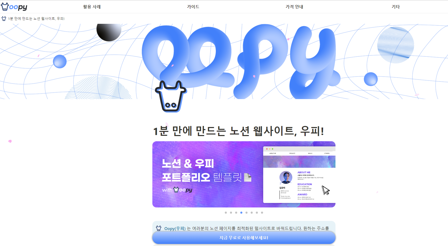 우피는 노션 페이지를 최적화된 웹사이트로 바꿔드립니다. 원하는 주소를 연결하여 나만의 홈페이지를 시작해 보세요.