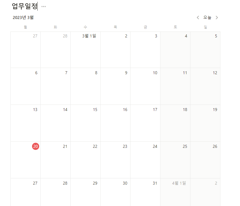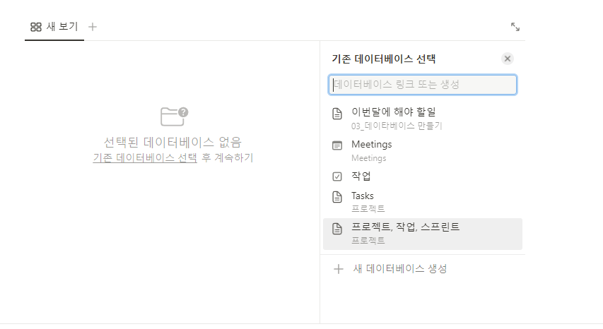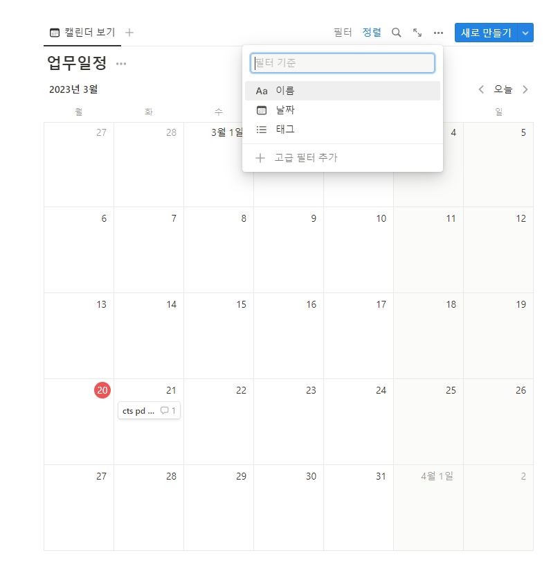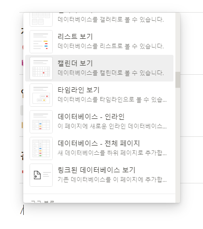 그러면 캘린더 정보를 입력할 수 있는 화면이 나옵니다. ` 우측 하단에 있는 새 데이터베이스 생성을 누르시면 캘린더가 나타납니다.