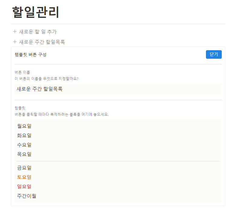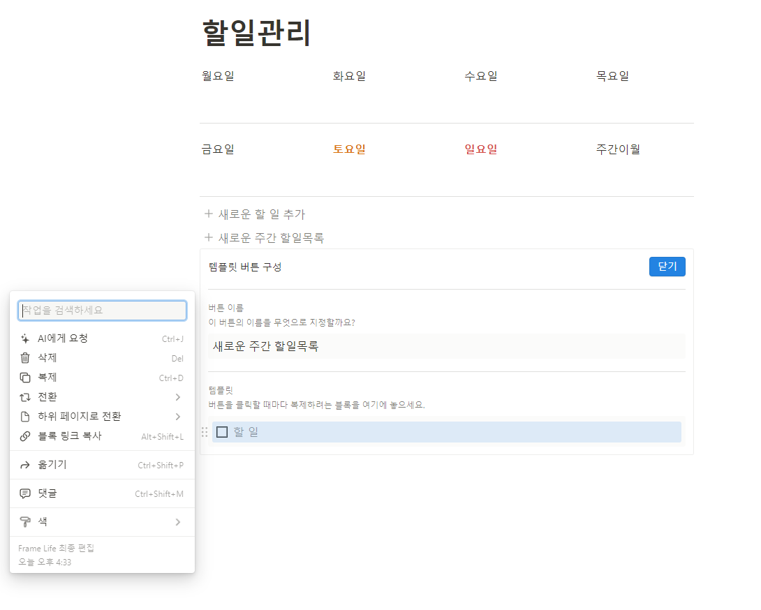 그래서 아래는 할일 템플릿을 만드는 방법에 대해 말씀드리고 자 합니다.