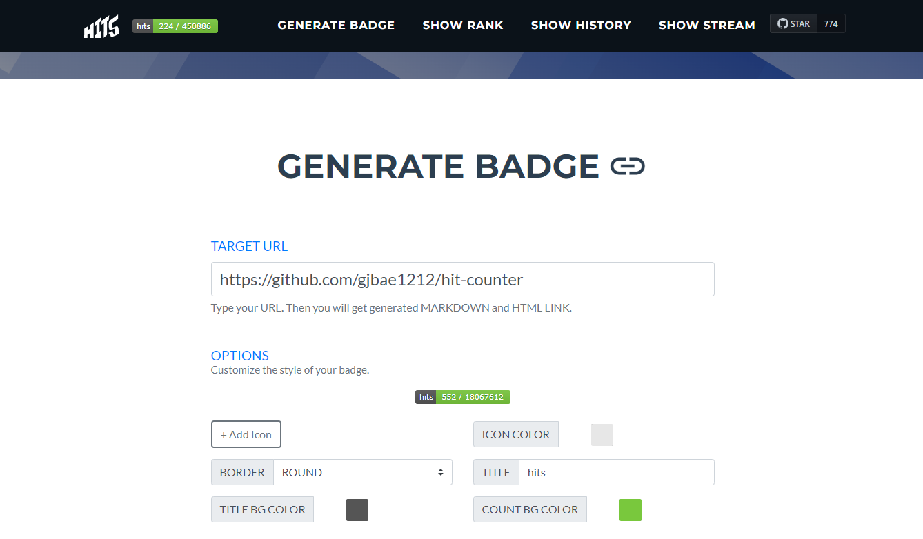 힛트 위젯은 카운트를 홈페이지나 블로그에 붙일 수 있도록 합니다. 사용방법은 직관적이이서 특별한 내용이 없읍니다. 원하는 스타일과 색상만 선정하고 링크 주소를 해당 페이지에 붙혀넣어면 바로 인식하고 작동합니다. 오늘의 방문자와 총 방문자 카운트 등을 설치해 보세요.