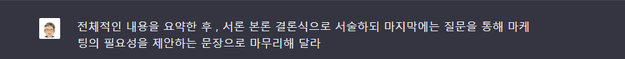 7. 전체적인 내용을 요약한 후 , 서론 본론 결론식으로 서술하되 마지막에는 질문을 통해 마케팅의 필요성을 제안하는 문장으로 마무리해 달라