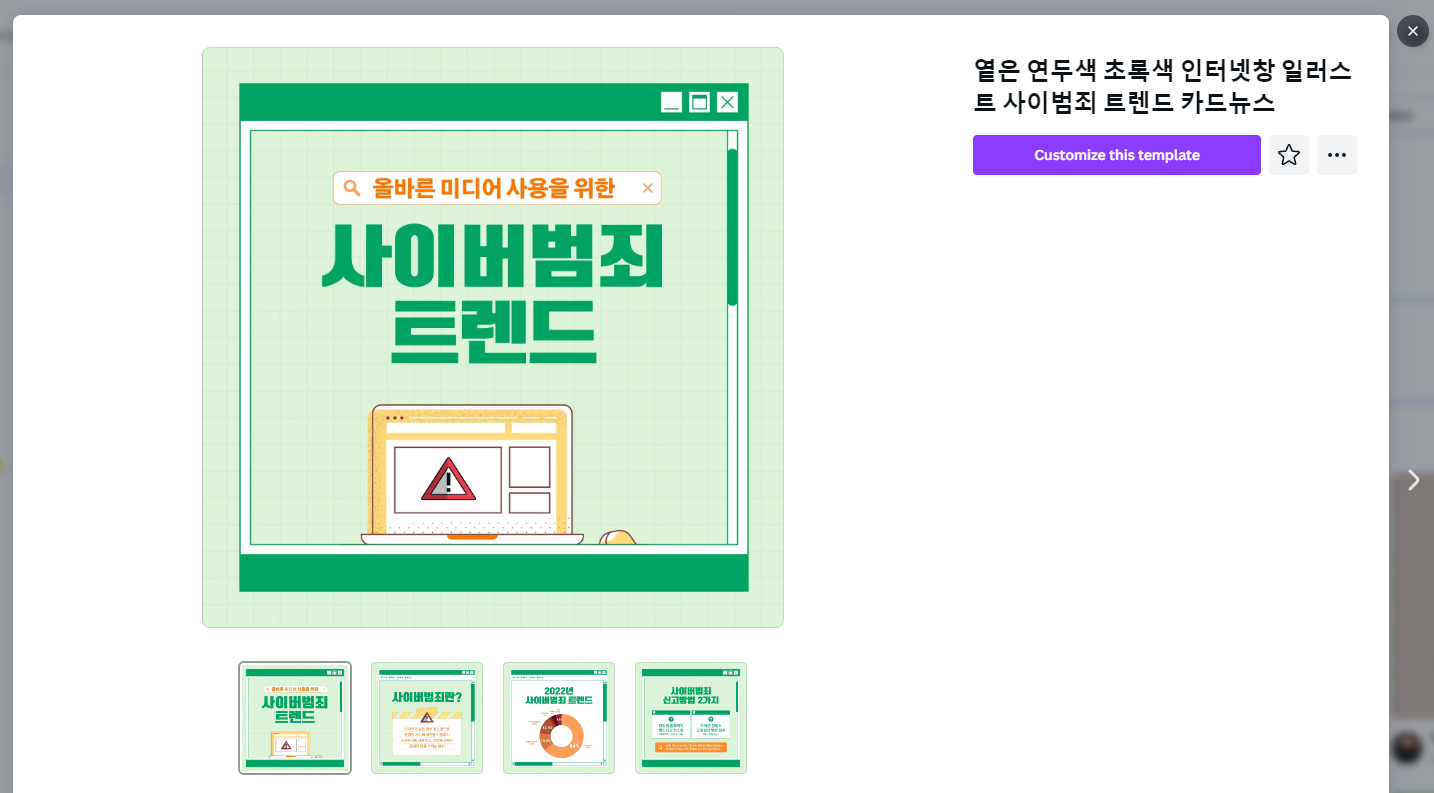 템플릿을 이용하여 카드뉴스를 제작할 수 있습니다.