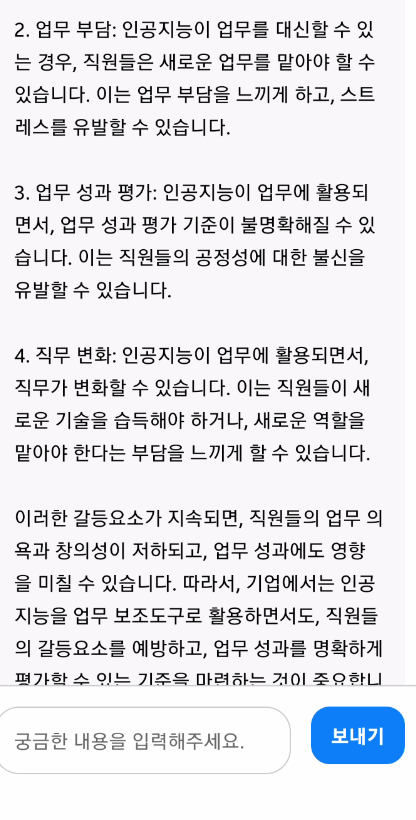 다른 질문을 해보자 인공지능으로 인해 발생하는 갈등요소에 대해 질문이다.