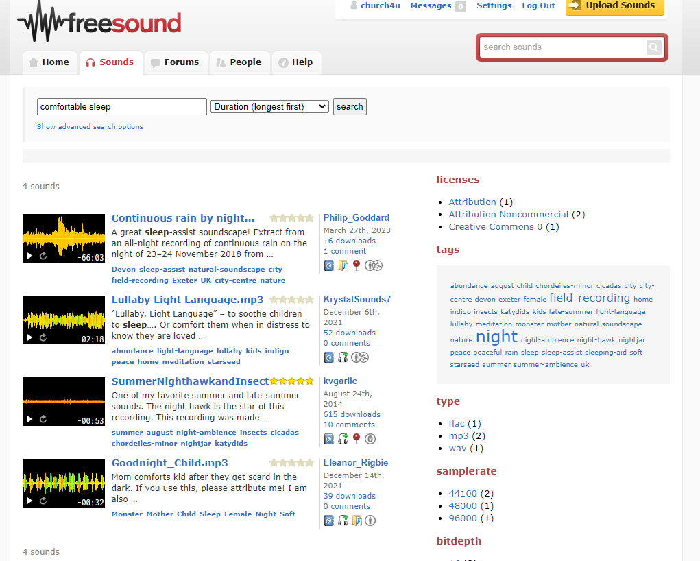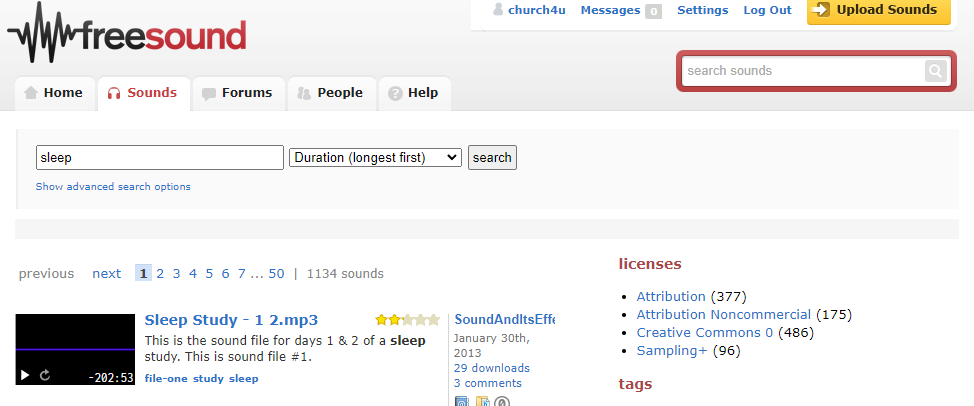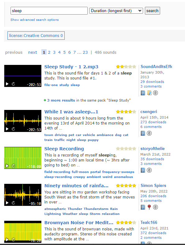 1000개 이상의 음원이 나왔습니다. 저작권이 없는 음원을 찾아서 사용해야 합니다. 유튜브에 올려서 사용하는 목적이라면 Creative Commons 을 사용해야 합니다. 그런 후 위의 검색창에 보면 duration longest first를 선택하여 음원을 찾습니다. 그러면 수면음악처럼 오랜 시간 플레이할 수 있는 음원을 챙길 수 있게 됩니다.