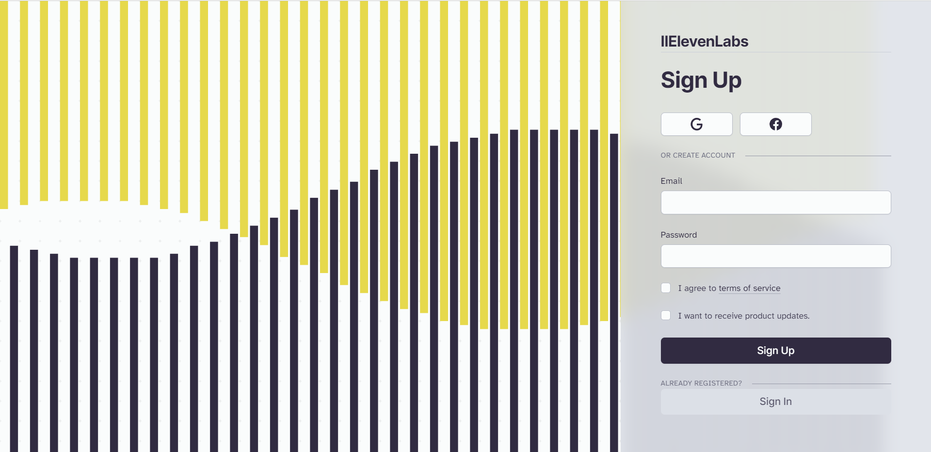 Elevenlabs 상담에 있는 회원가입부터 시작합니다.