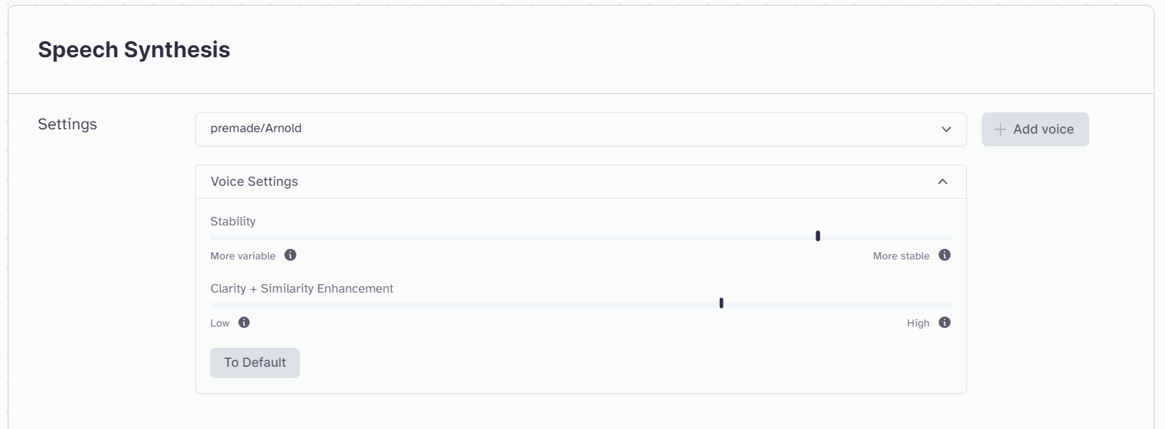 아놀드의 목소리를 선택되었지만 더 많은 음성이 내림메뉴를 눌러서 선택가능합니다.