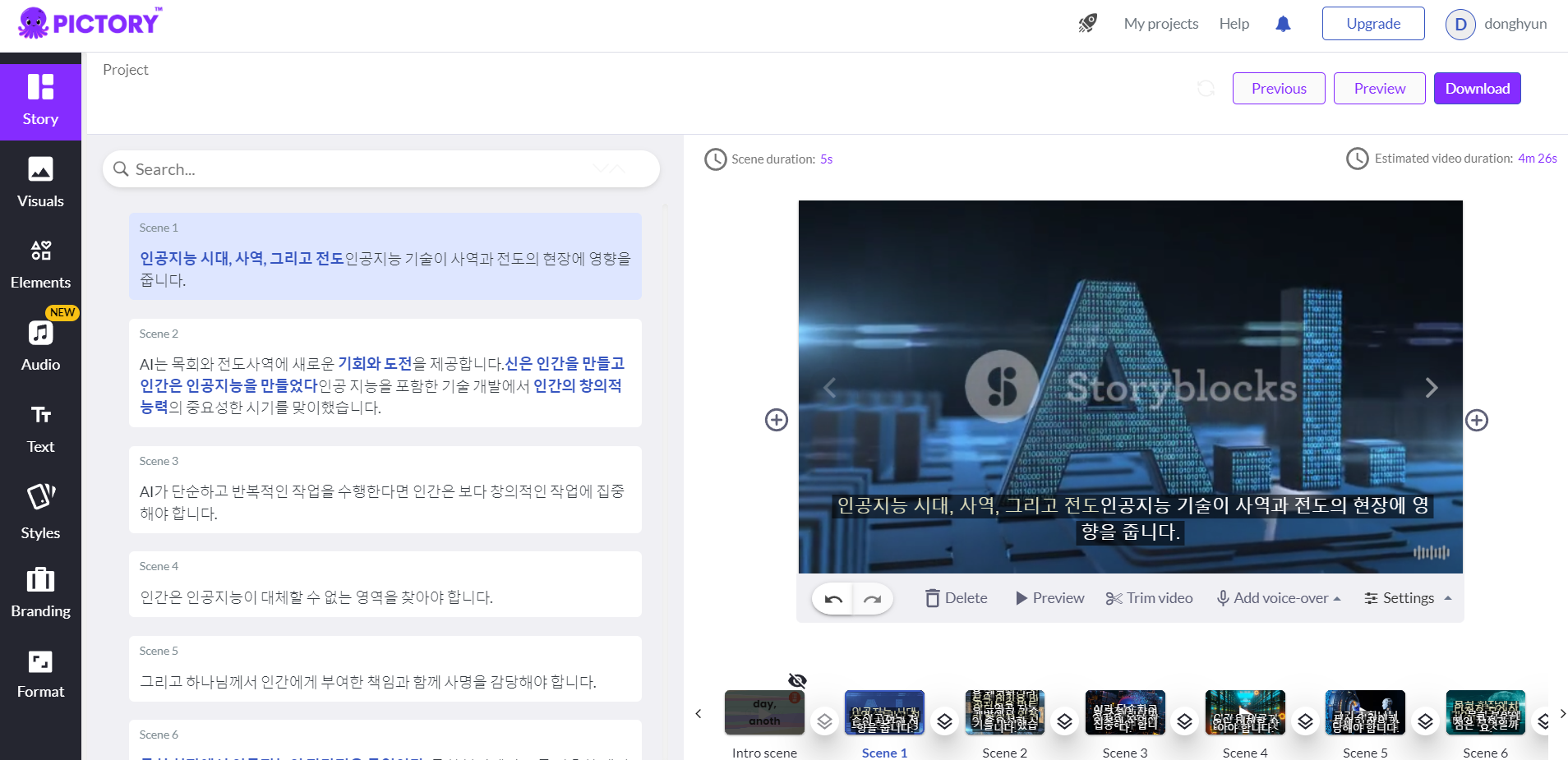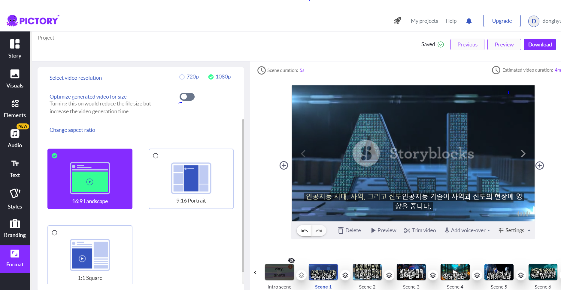 3. 픽토리으로 영상을 제작합니다.