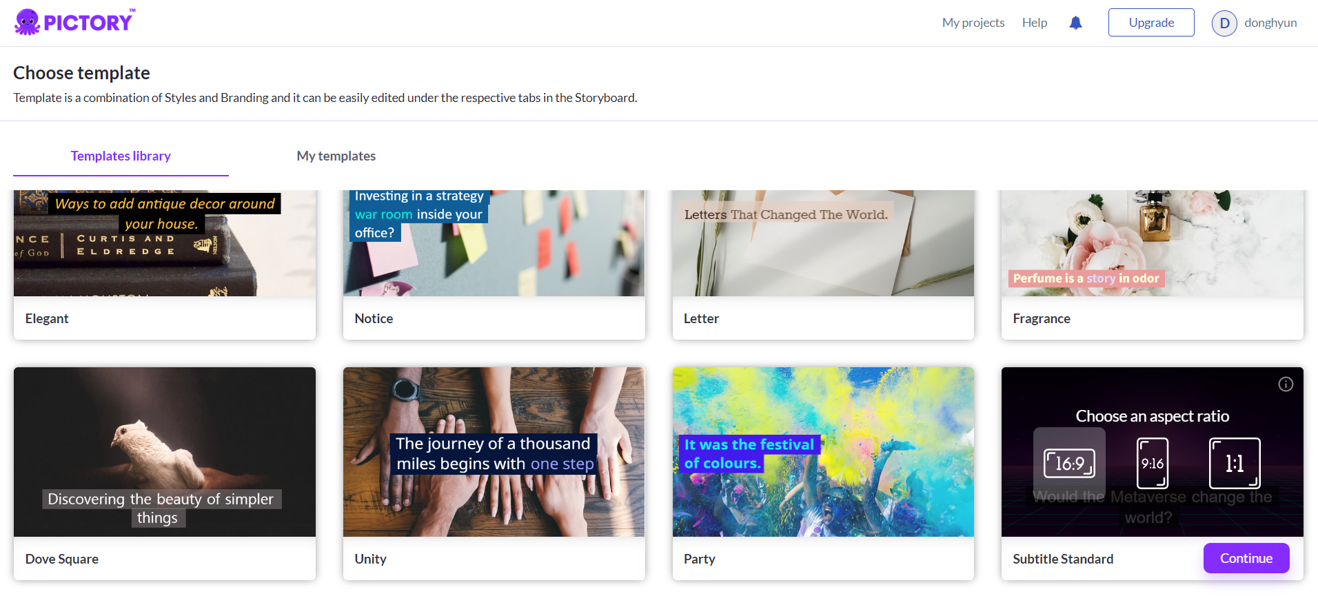 다양한 템플릿중에서 우측 하단에 있는 메타버스 템플릿을 선택합니다.