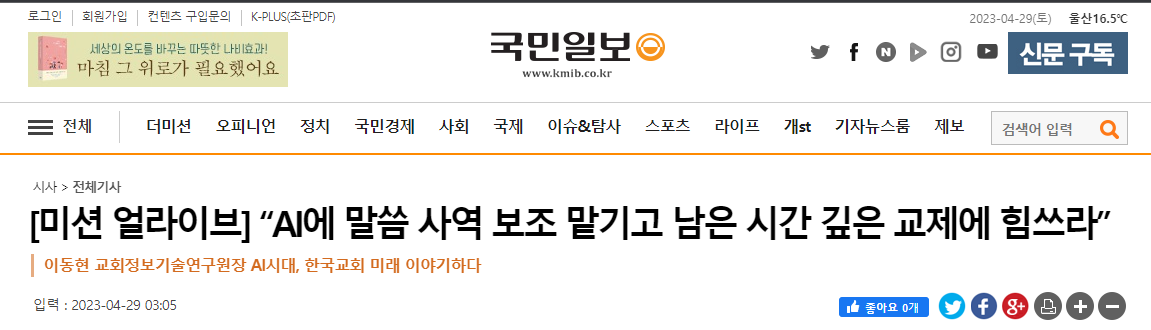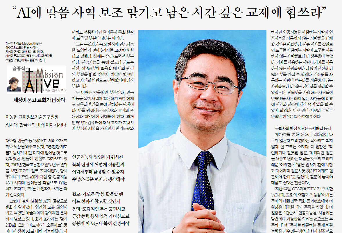 [국민일보] "인공지능에 말씀사역 보조 맡기고 남은 시간 깊은 교제에 힘쓰라"