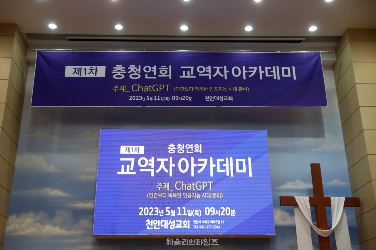 함께 교회를 세우는 충청연회(김성선 감독)는 5월 11일 오전 9시 20분. 천안 대성교회에서 ChatGPT(인간보다 똑똑한 인간지능 시대 준비)라는 주제로 김성선 감독이 개회예배의 말씀을, 김동환 교수(연세대 연합신학대학원 연세의료원 원목 실장 겸 교목실장/기독윤리학 사전 외 저서 다수)가 전체특강 1을, 이동현 원장(교회정보기술연구원 원장,스마트쉼문화운동본부 운영위원장, 한국중독융합학회 이사/스마트 저도법 외 저서 다수)가 전체특강 2차를 맡은 가운데, 제1차 교역자 아카데미를 개최했다.