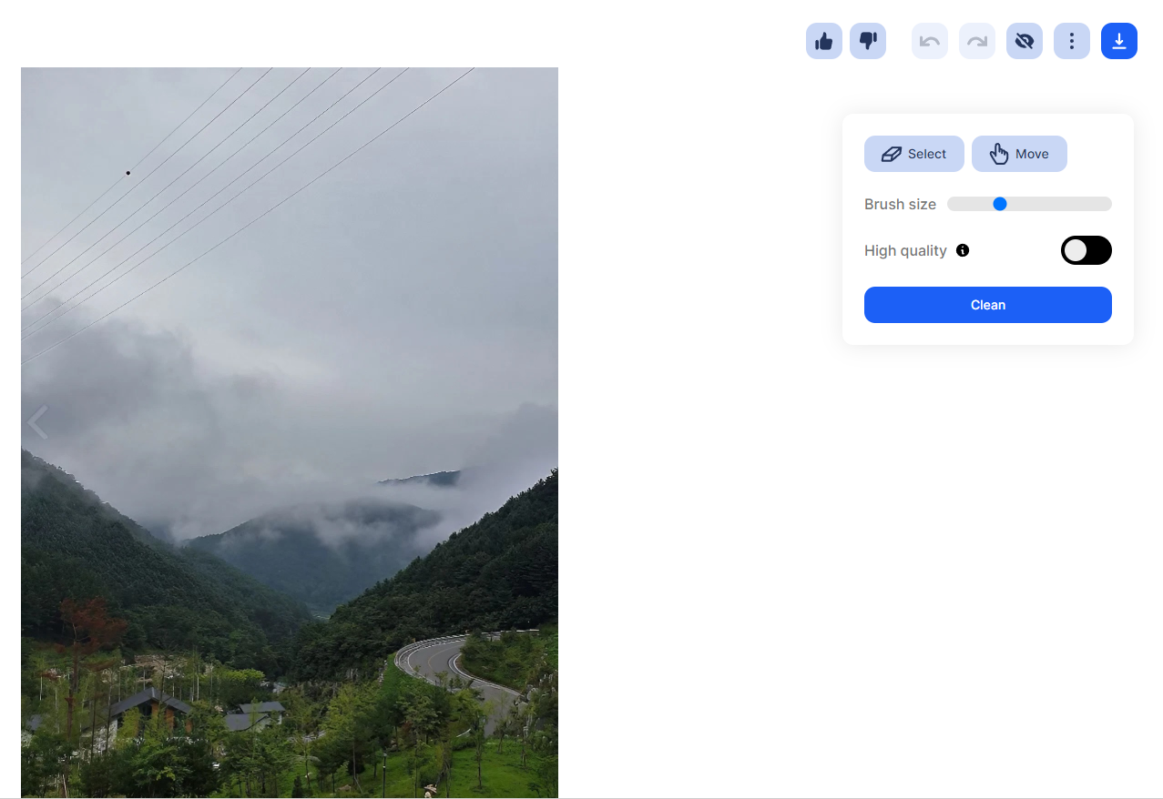 사진을 찍다보면 원하지 않는 부분이 반드시 있습니다. 이런 경우 이미지에서 해당 부분을 삭제할 수 있습니다. 원본 사진을 보시면 전선이 보입니다. 삭제하도록 하겠습니다. 클린업이라는 페이지에서 해당 이미지의 불필요한 부분을 삭제할 수 있습니다. 링크를 클릭한 후 들어갑니다.