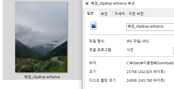 원본은 겨우 70K 정도인데 247K로 파일용량이 조금 늘어났습니다. 미세하지만 화질에서도 차이가 납니다.