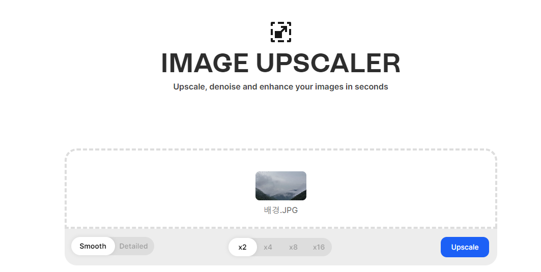 기본의 이미지가 웹용으로는 나름 괜찮지만 인화용으로는 그렇다면 먼저 업스케일을 통해 화질을 올려줍니다.