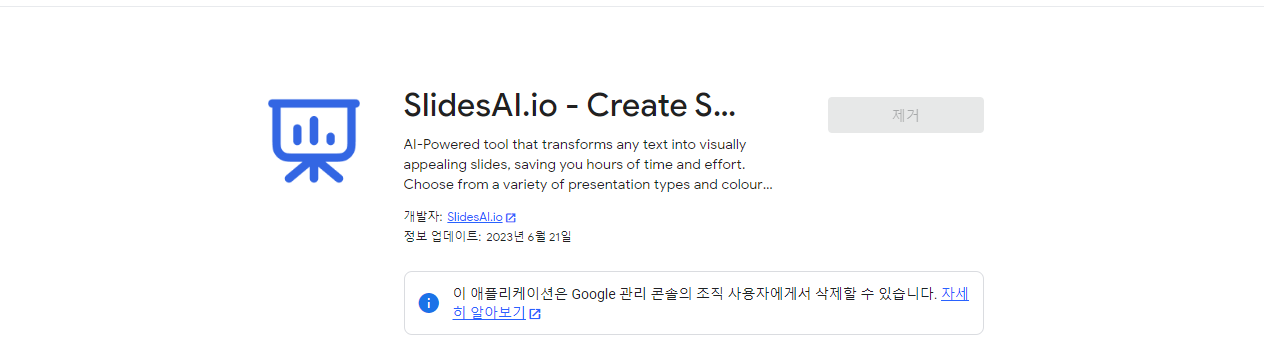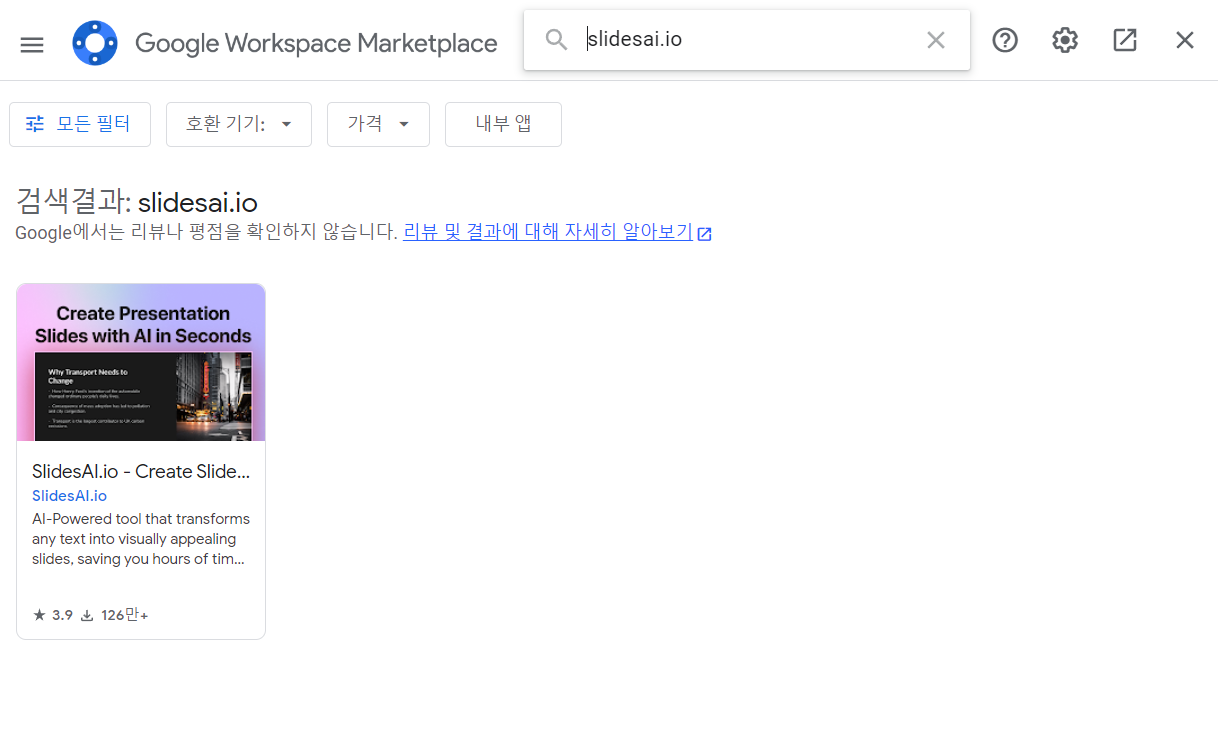 3. 확장프로그램에서 검색창에 아래의 slidesai.ai라고 입력한 후 프로그램이 나오면 설치합니다.