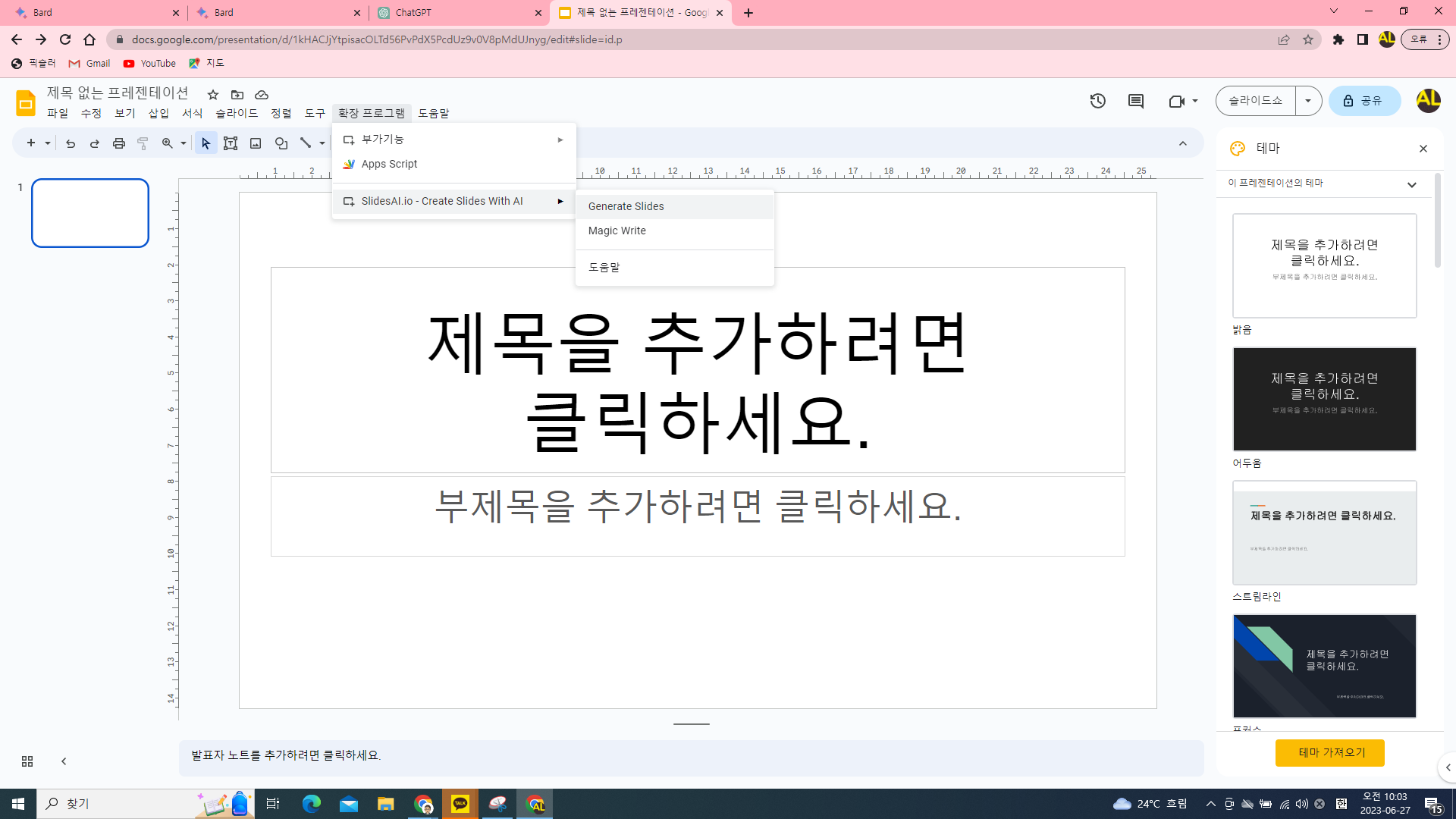 [연재 58] 구글프리젠테이션에서 인공지능 슬라이드 작성하기
