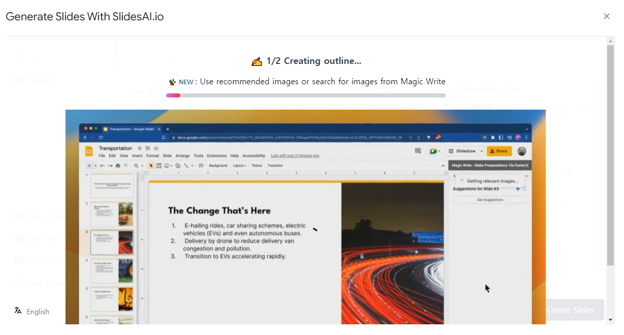 잠시 기다리면 슬라이드가 만들어집니다.
