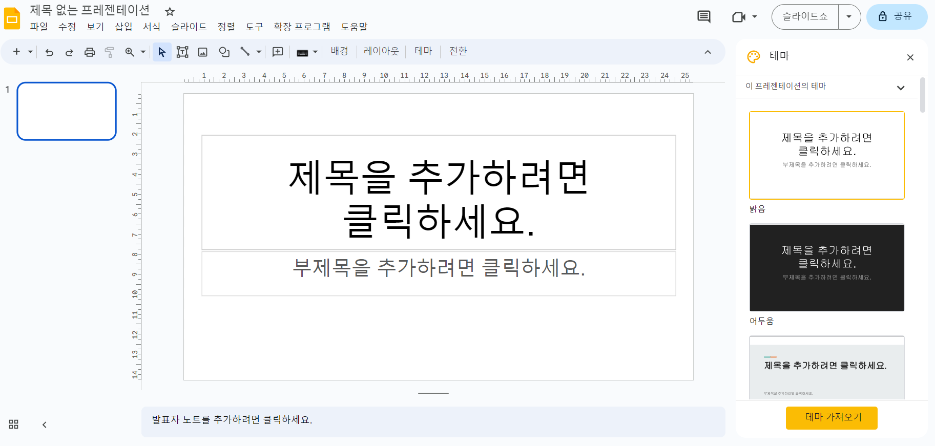 2. 좌측 상단에 있는 빈 슬라이드를 클릭합니다.