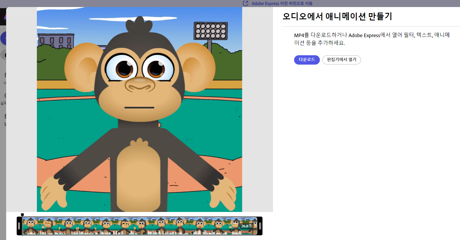 애니메이션에 내 목소리로 된 오디오가 합성되었네요. 플레이해 보시거나 다운로드 해 보세요.