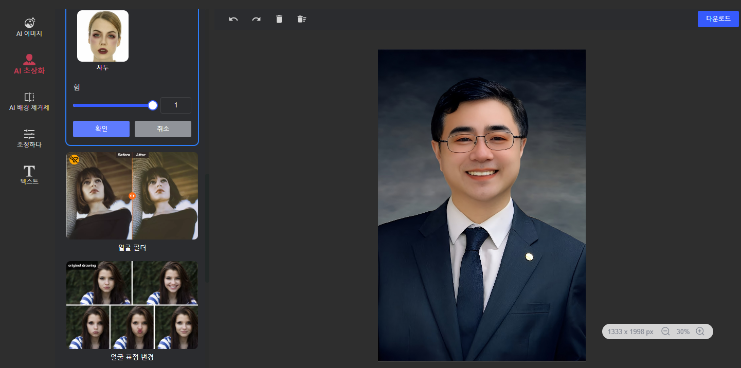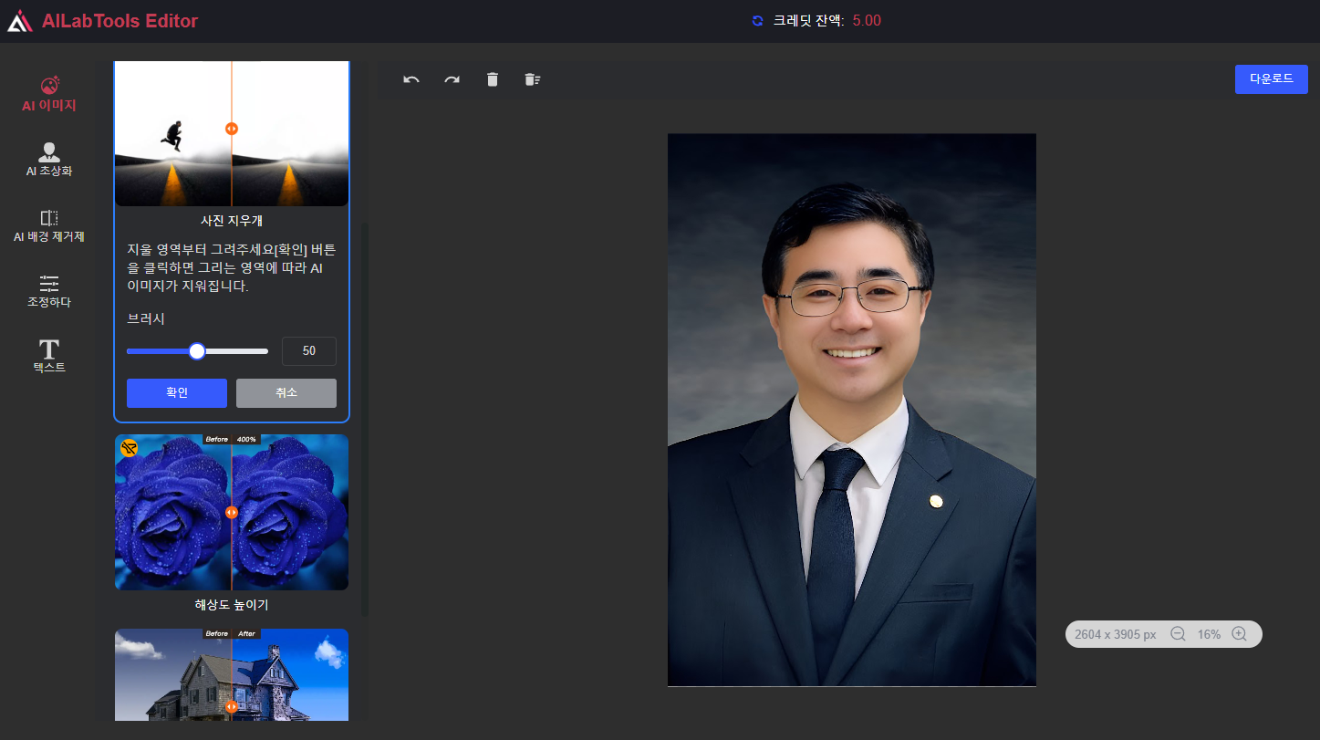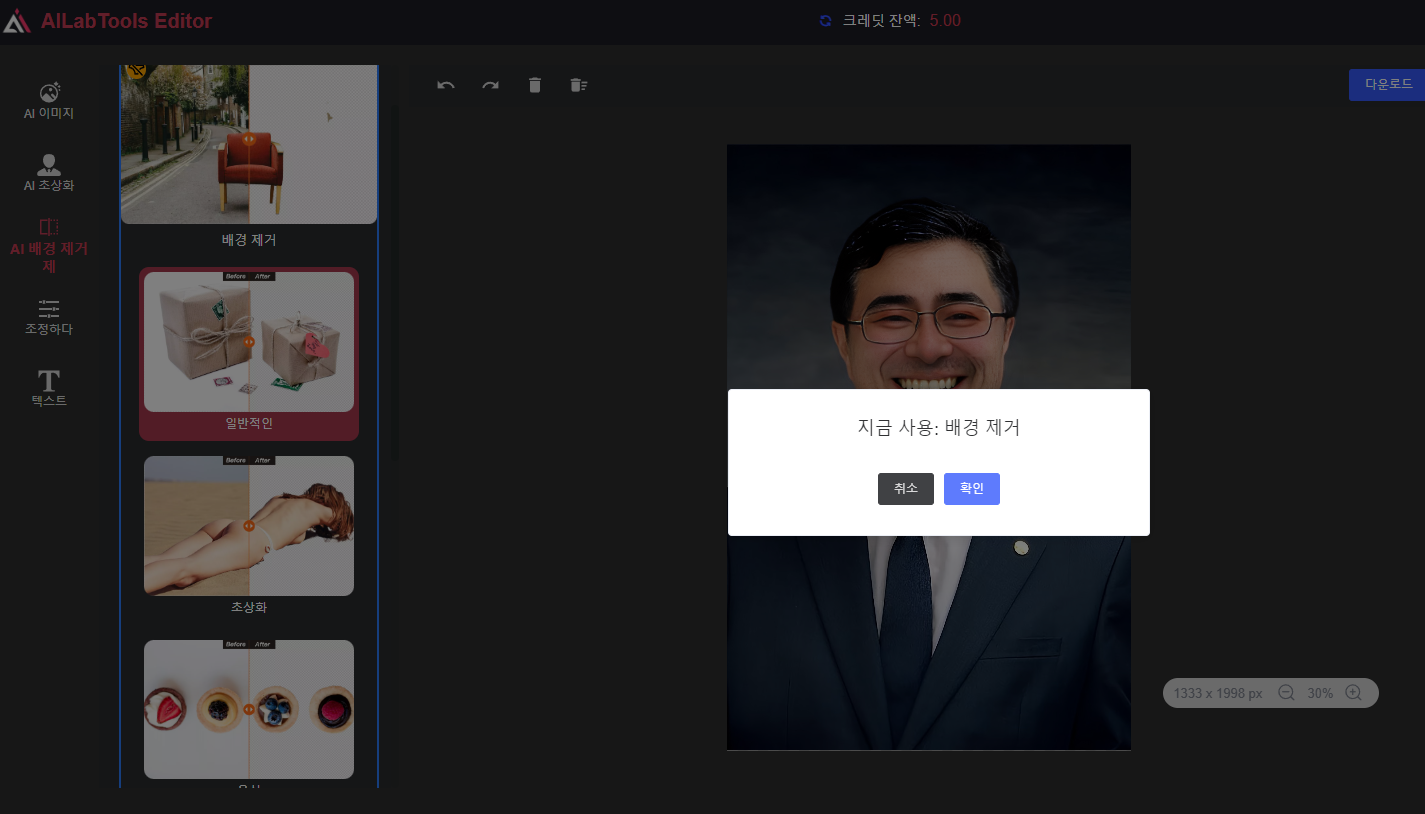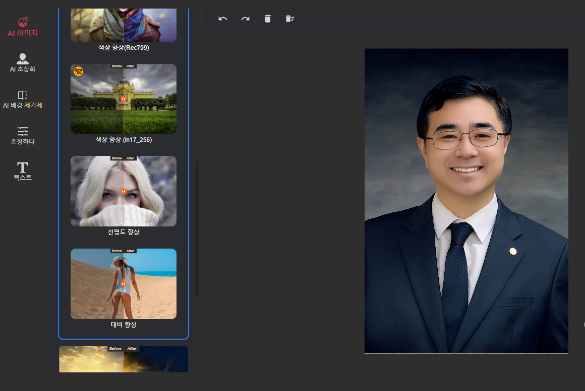 인공지능 배경제거제를 선택하여 배경을 삭제합니다.