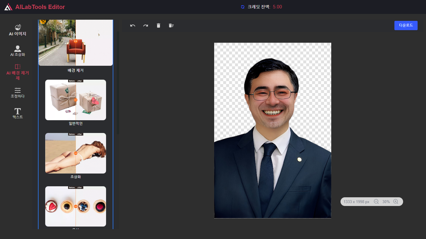 인공지능 배경제거제를 선택하여 배경을 삭제합니다.