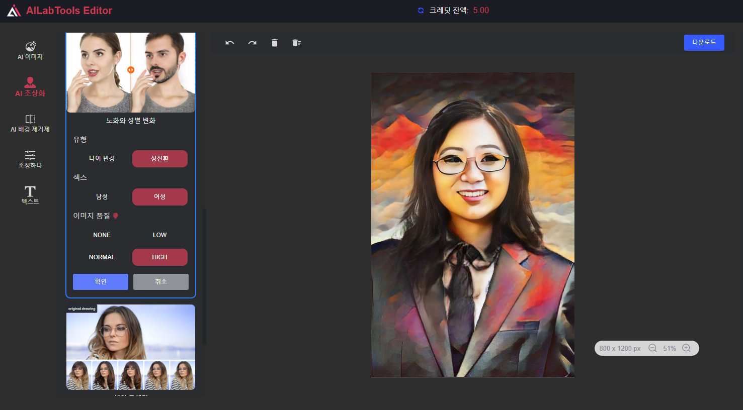 이미지를 남성에서 여성으로 여성을 남성으로 변경된 이미지로 변경할 수 있습니다.