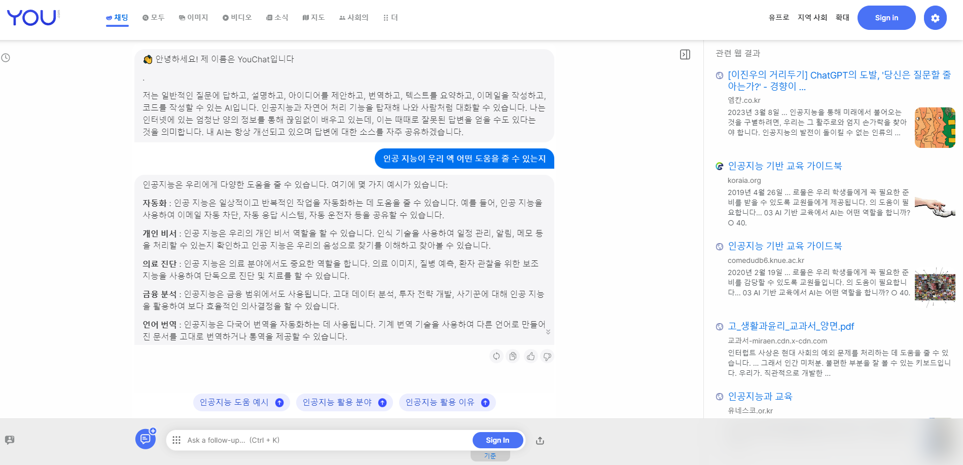 마지막으로 소개하고 싶은 것은 바로 유닷컴이다. (https://you.com/)